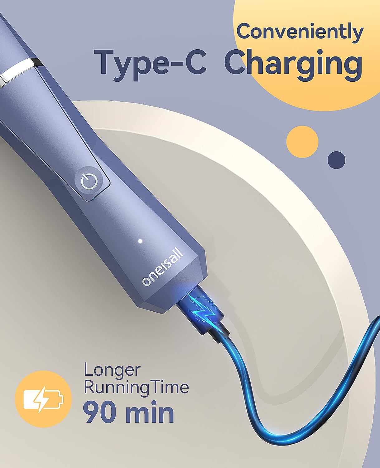 - [90-Min Runtime & Fast Type-C Charging]: oneisall dog hair trimmer can Groom 2+ dogs nonstop with 90 minutes of cordless power—no sudden shutdowns! Fully charges in just 1.5 hours with Type-C (works with phones, laptops, or power banks). The LED battery indicator keeps you informed, so it's always ready for your next session. Efficient, reliable, and hassle-free!