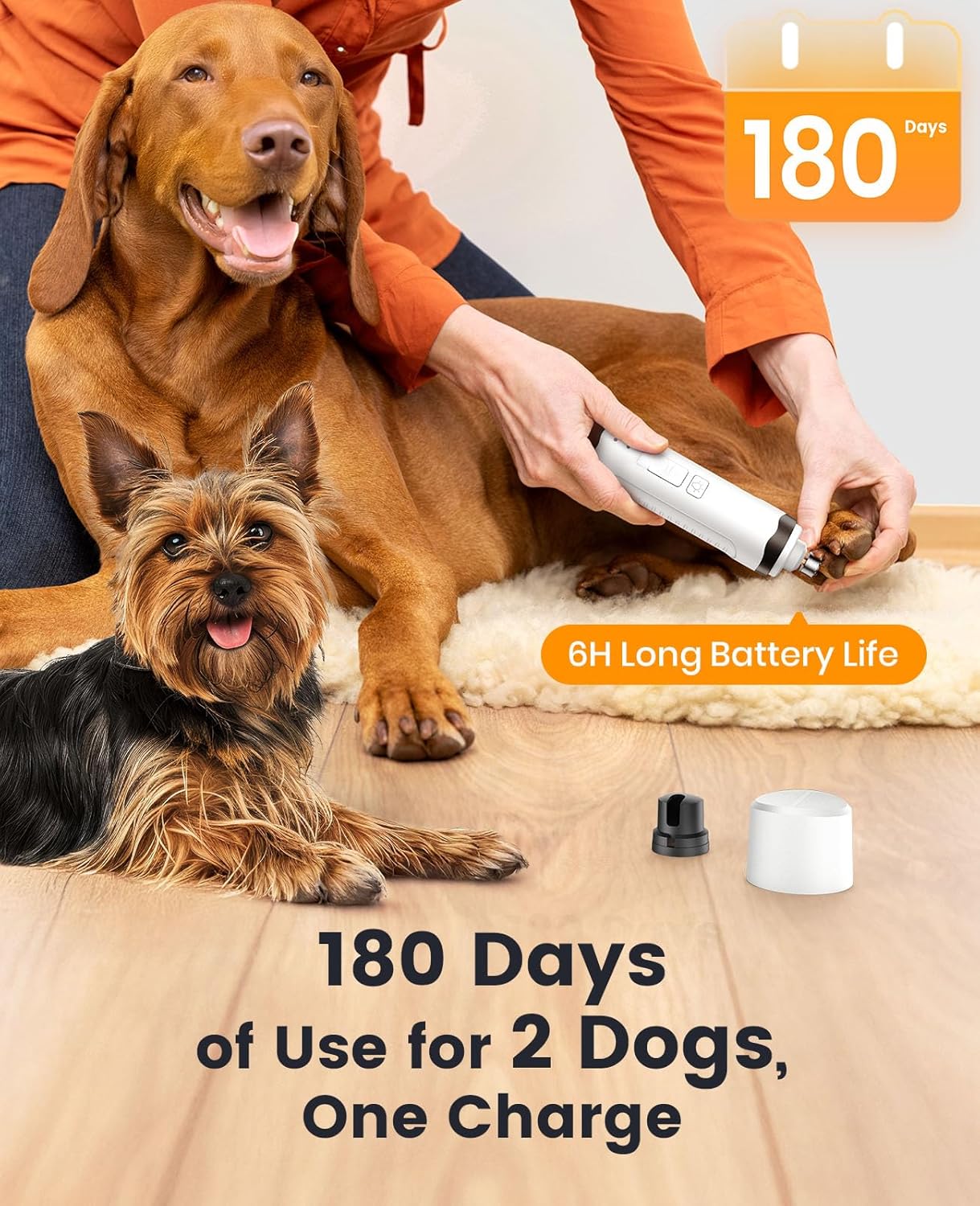 - Rechargeable and Long Battery Life: The electric dog nail trimmer is rechargeable, and dog nail grinder has a built-in battery that can last for up to 6 hours after a 1.5 hours charge. The lightweight and ergonomic design makes it easy to handle in your right or left hand
