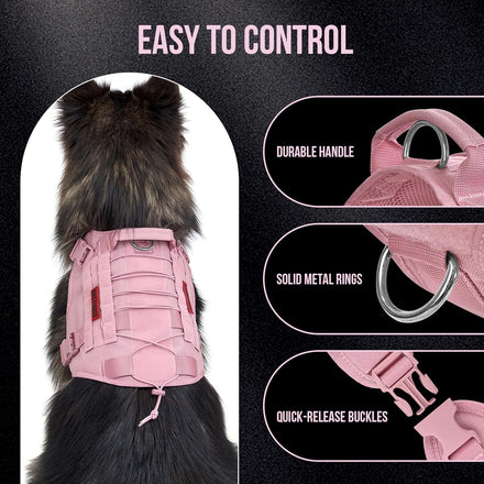 - EASY ADJUSTABLE:Adjustable Dog Harness with a Top handle for traffic control, 4 quick release buckles for easy on and off while providing extra security;and one leash attachment point at the front.