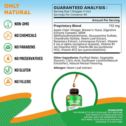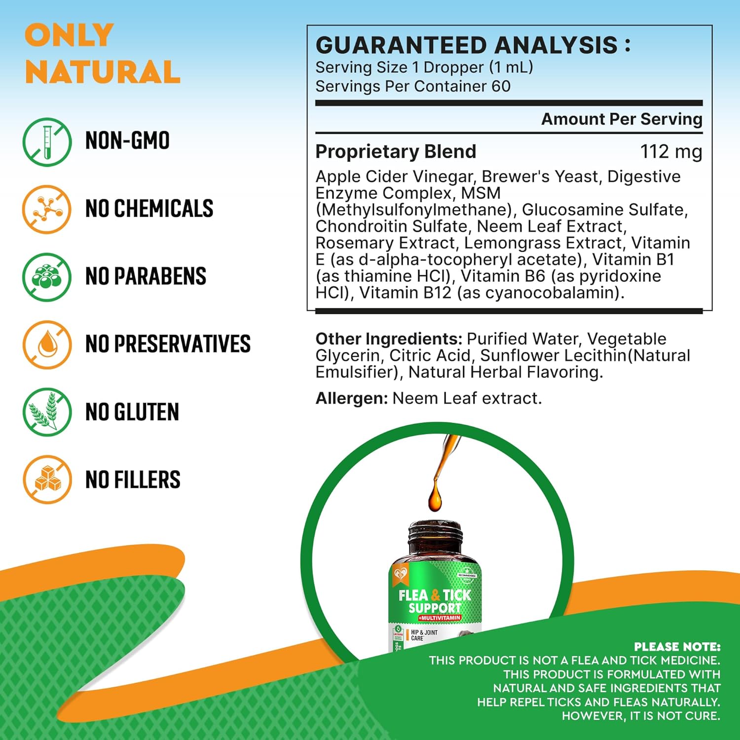 - ✅ MULTIVITAMIN COMPLEX with ENZYMES: Innovative formula with glucosamine and chondroitin and enzymes for effective canine and feline flea and tick defense, comprehensive support for your pet’s hip joints, digestive support, vital energy levels, skin coat health, and immune system strengthening.