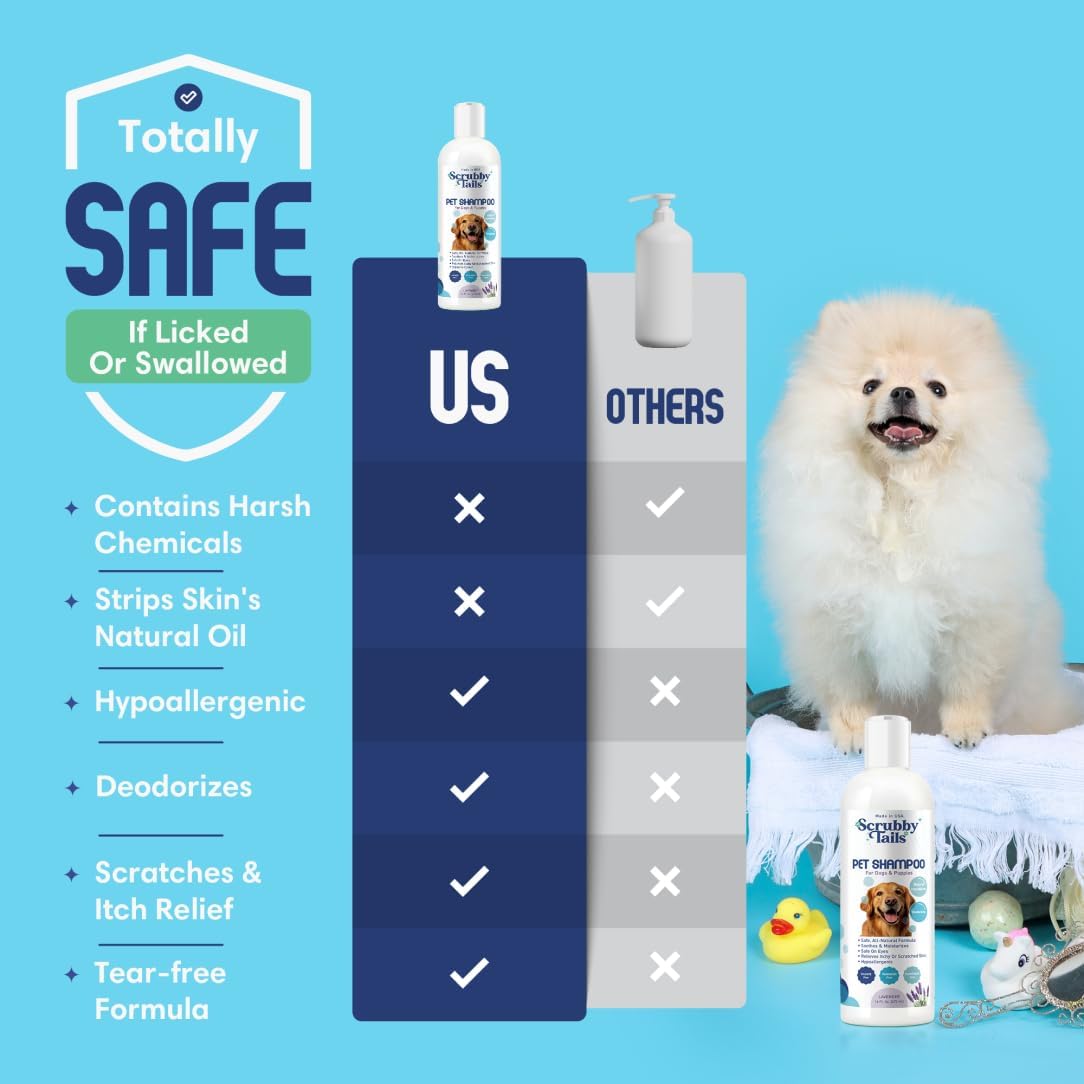 - Safe And Gentle: Our thoughtfully crafted, pH-balanced formula soothes dry, itchy skin while being completely free of harsh chemicals, it's sulfate free, parabens free, alcohol free with no dyes, or soap, Scrubby Tails provides effective and safe puppy shampoo for puppies 8 weeks old and older