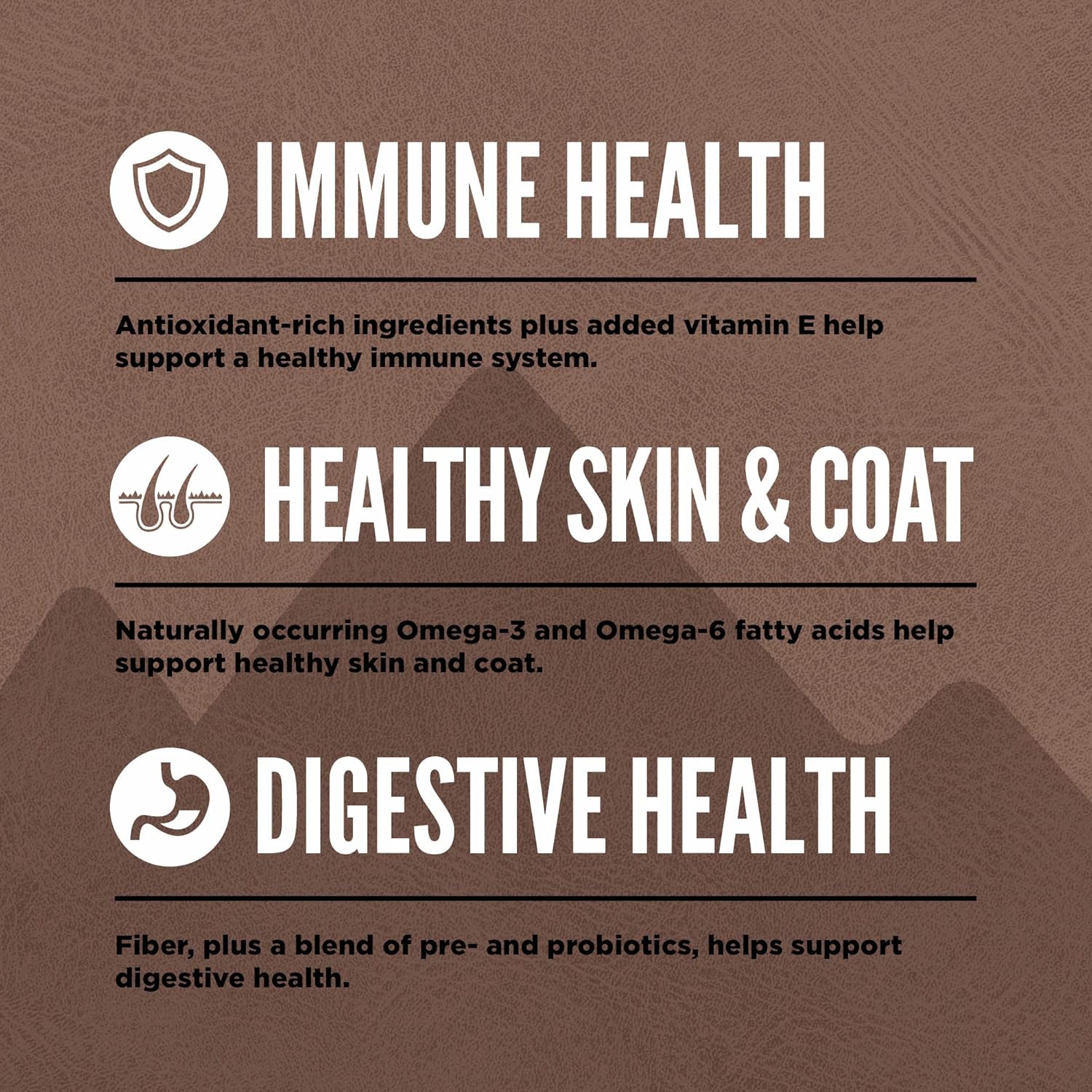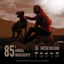 - High-protein dry dog kibble made with fresh or raw meat as the first 5 ingredients*, including Beef, Wild Boar, Lamb, Pork and Beef Liver