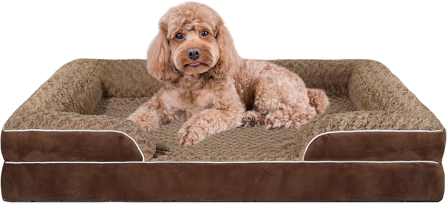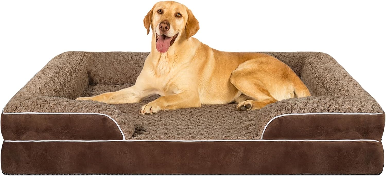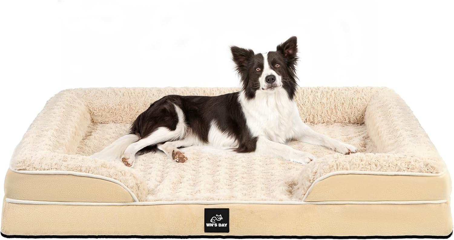 Do you know how many hours do dogs sleep a day? On average, adult dogs sleep around 12-14 hours a day. Puppies and senior dogs may sleep even more, sometimes up to 18 hours a day. Good sleep helps a dog's brain development, memory, and learning capacity, as well as its immune system. So, why not choose a comfortable bed for your pet? Why choose us? Orthopedic Dog Bed: High-density egg crate foam can provide good support for pets and relieve joint pressure. Ring Pillow Design: The ring pillows on all four sides allow pets to snuggle better in the large dog bed and provide a sense of security for pets Rose Velvet Fabric: Delicate touch, soft and smooth, pet-friendly Waterproof And Anti-slip: The waterproof design can prevent liquid from penetrating into the dog beds xlarge sized dog, and the anti-slip design can make pets more comfortable when using the dog couch bed Easy to clean: Just unzip and remove the inner foam to clean the bed cover, which can be machine-washed. After-sales service: You can contact us with any questions, and we will help you solve them in time Size recommendation: L: 36*28*6 in, suitable for dogs under 60lbs XL: 42 x 31 x 7 in, suitable for dogs under 100lbs XXL: 48 x 35 x 7.5, inches, suitable for dogs under 120lbs In order to give your pet a comfortable orthopedic dog bed, please do not hesitate, our dog beds will meet all your needs.