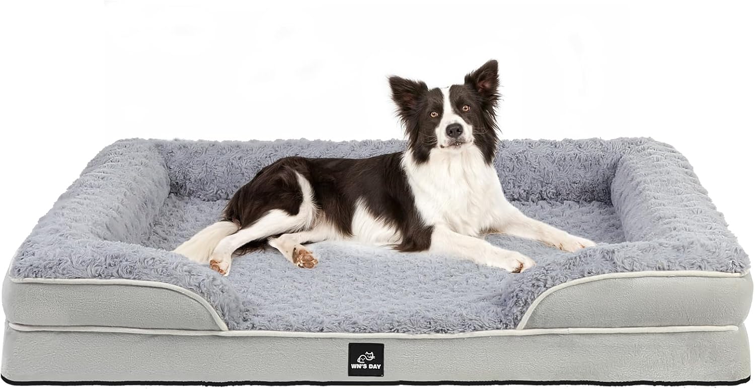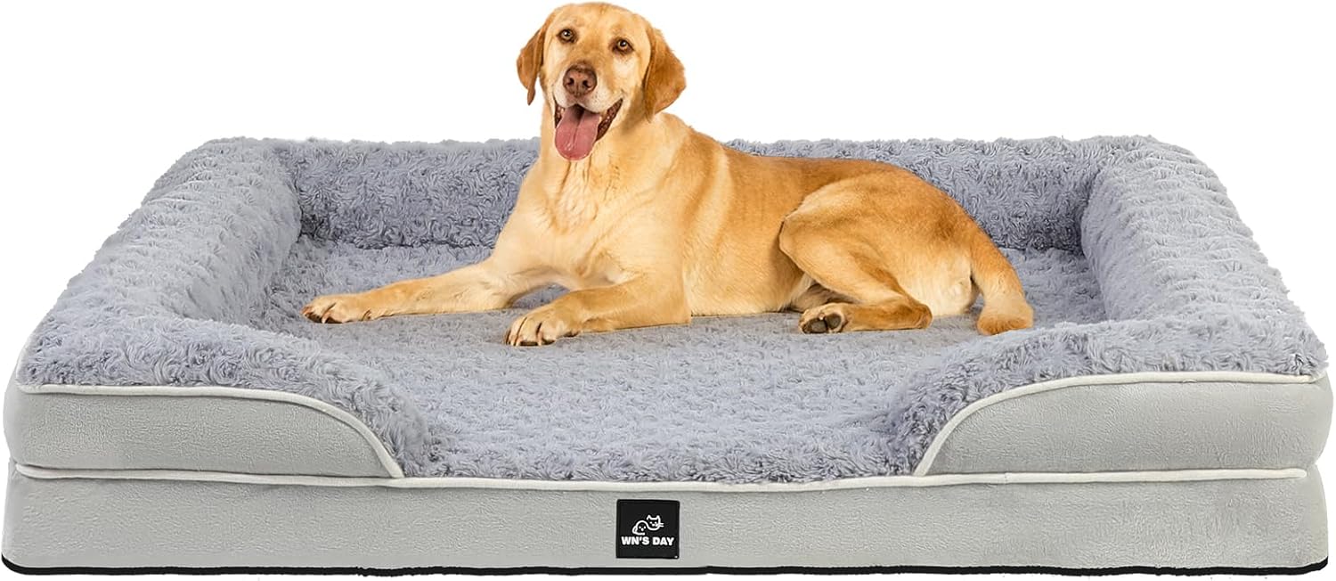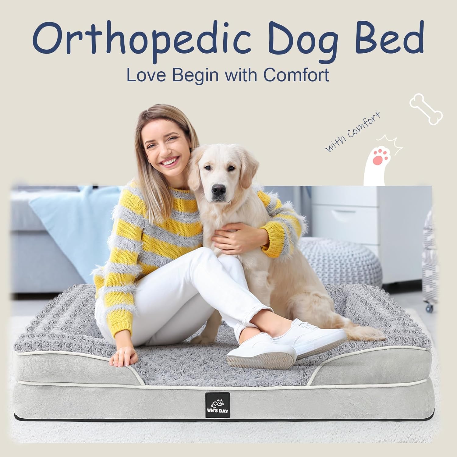 - 【Orthopedic Dog Bed】Compared to ordinary dog beds, the bottom of this large dog bed is filled with high-density egg crate foam, which has excellent softness and support, relieves the pressure on pet joints, maintains the natural curve of the spine, and promotes deep sleep for dogs.