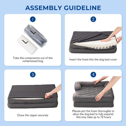 - Waterproof & Washable: No worry about getting wet and soiling the orthopedic foam dog bed, which has a waterproof lining on the back of the dog bed cover to prevent liquid leakage and protect the foam pad. The 2-side zipper design makes the cover easy to remove and can be cleaned directly with the washing machine, taking care not to wash the foam