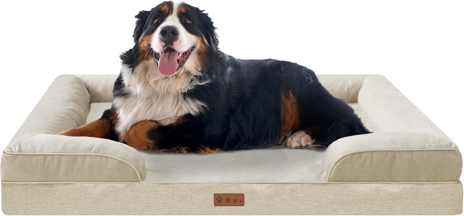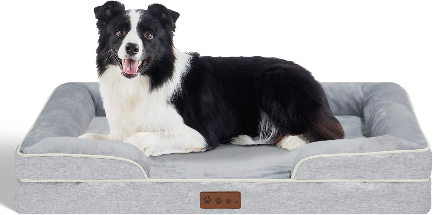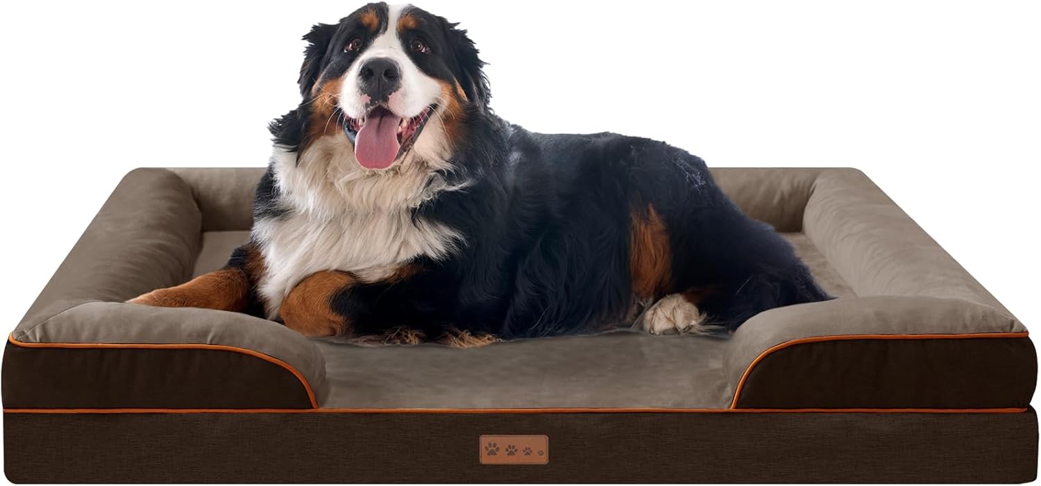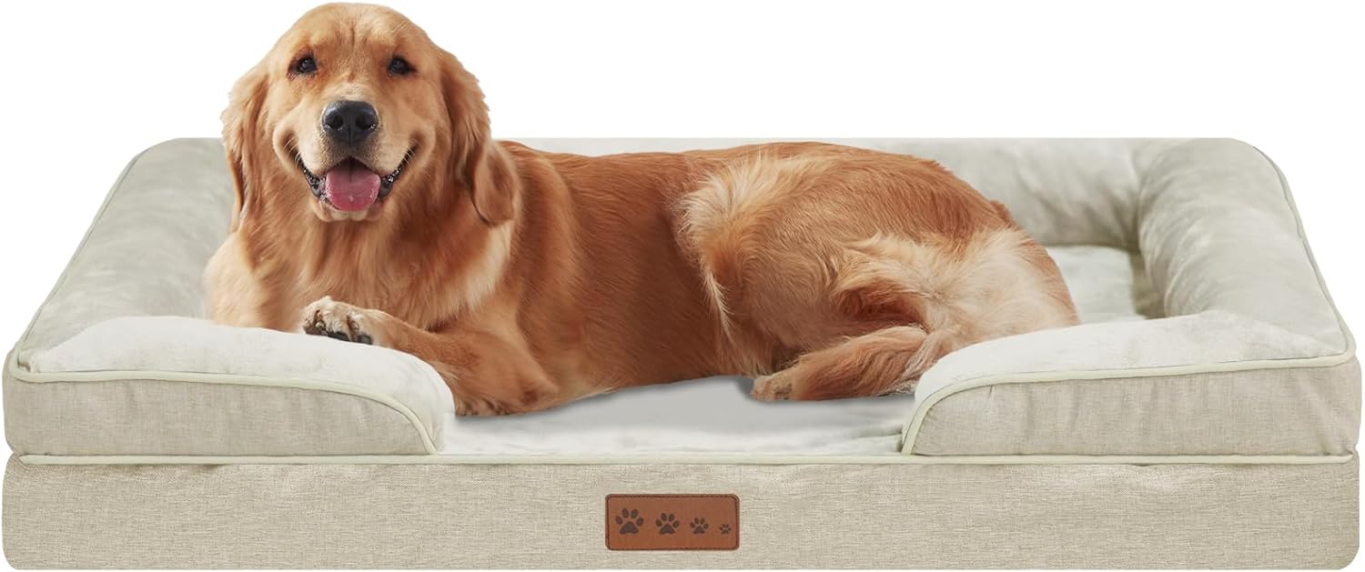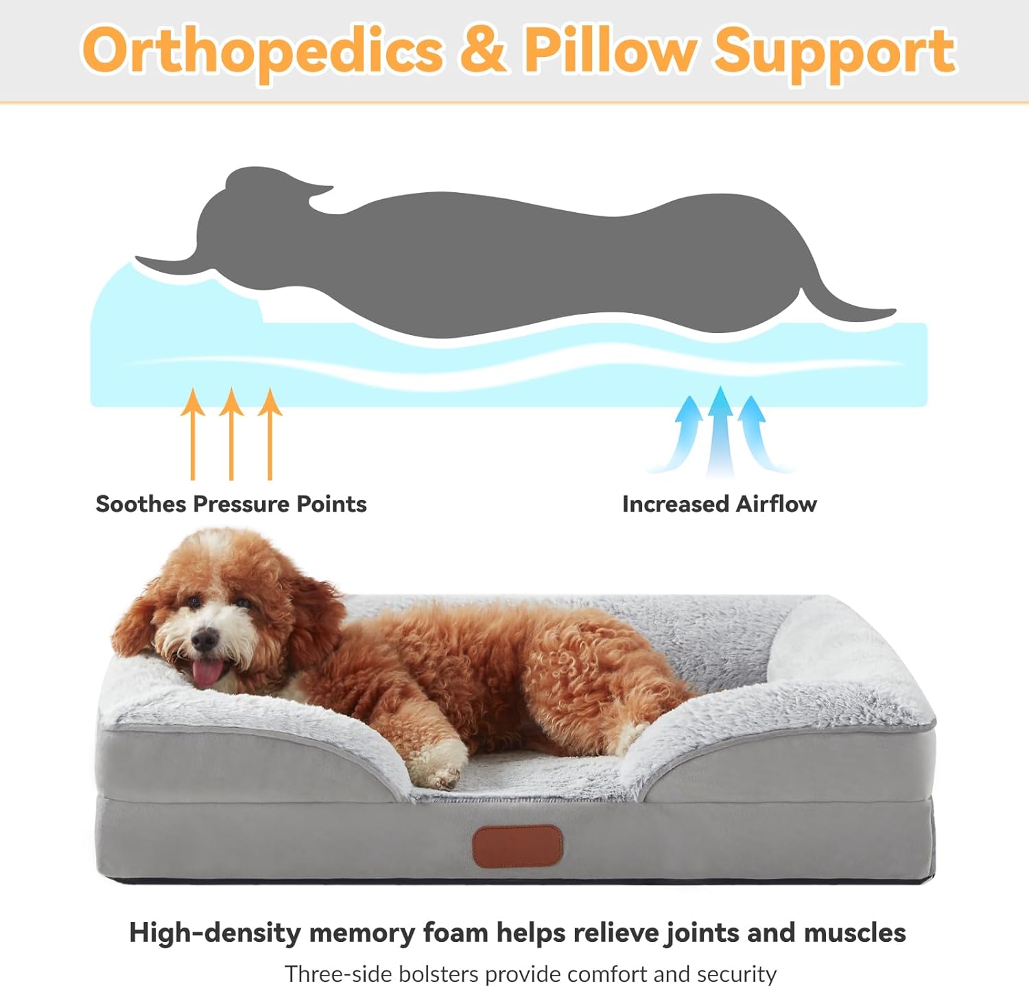 - LARGE DOG BED WITH BOLSTER: This Dog Sofa Bed with 3 sides crushed sponge-filled bolster provides extra support to our dog's neck and head. This orthopedic dog bed is a great choice for senior dogs that need bolster support for bodies