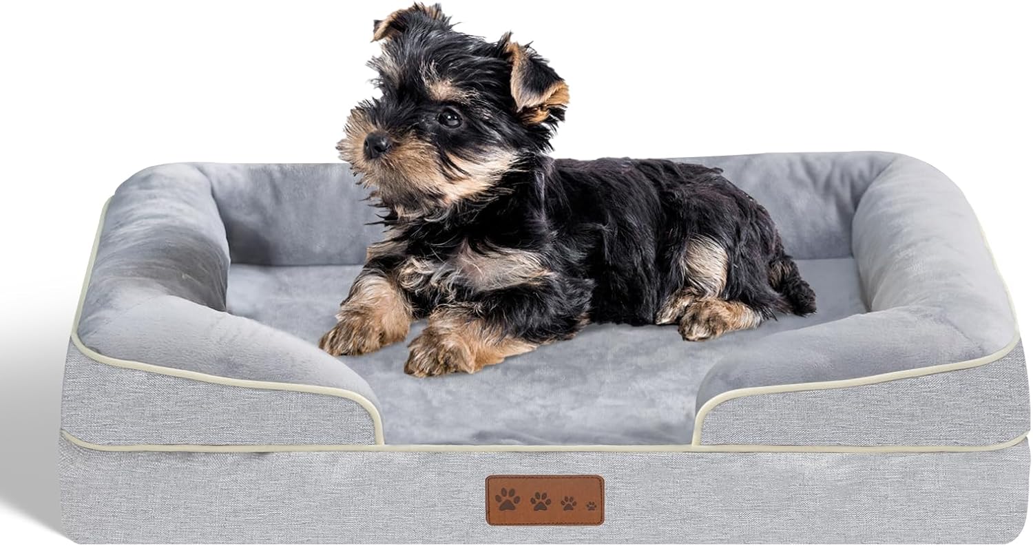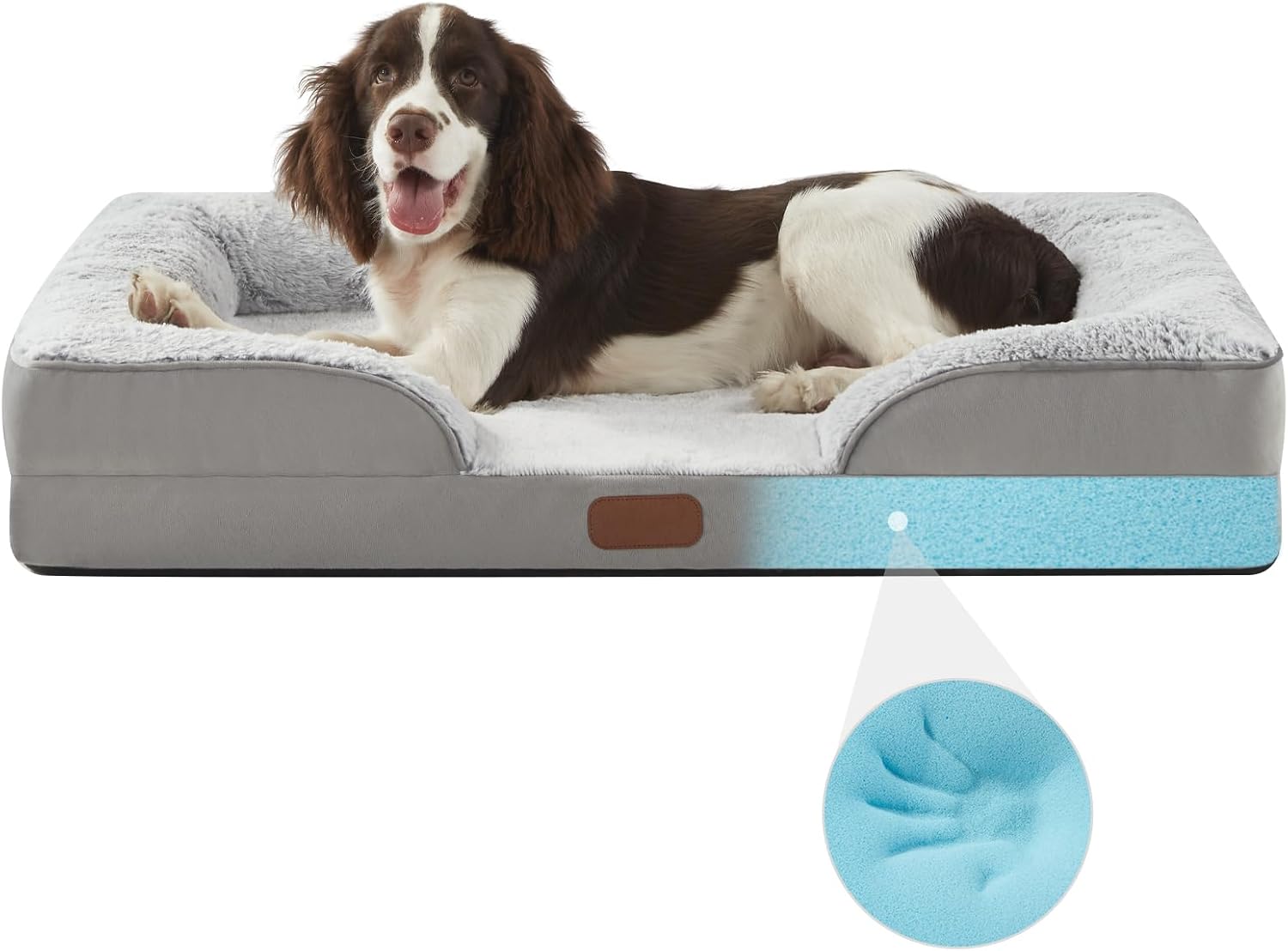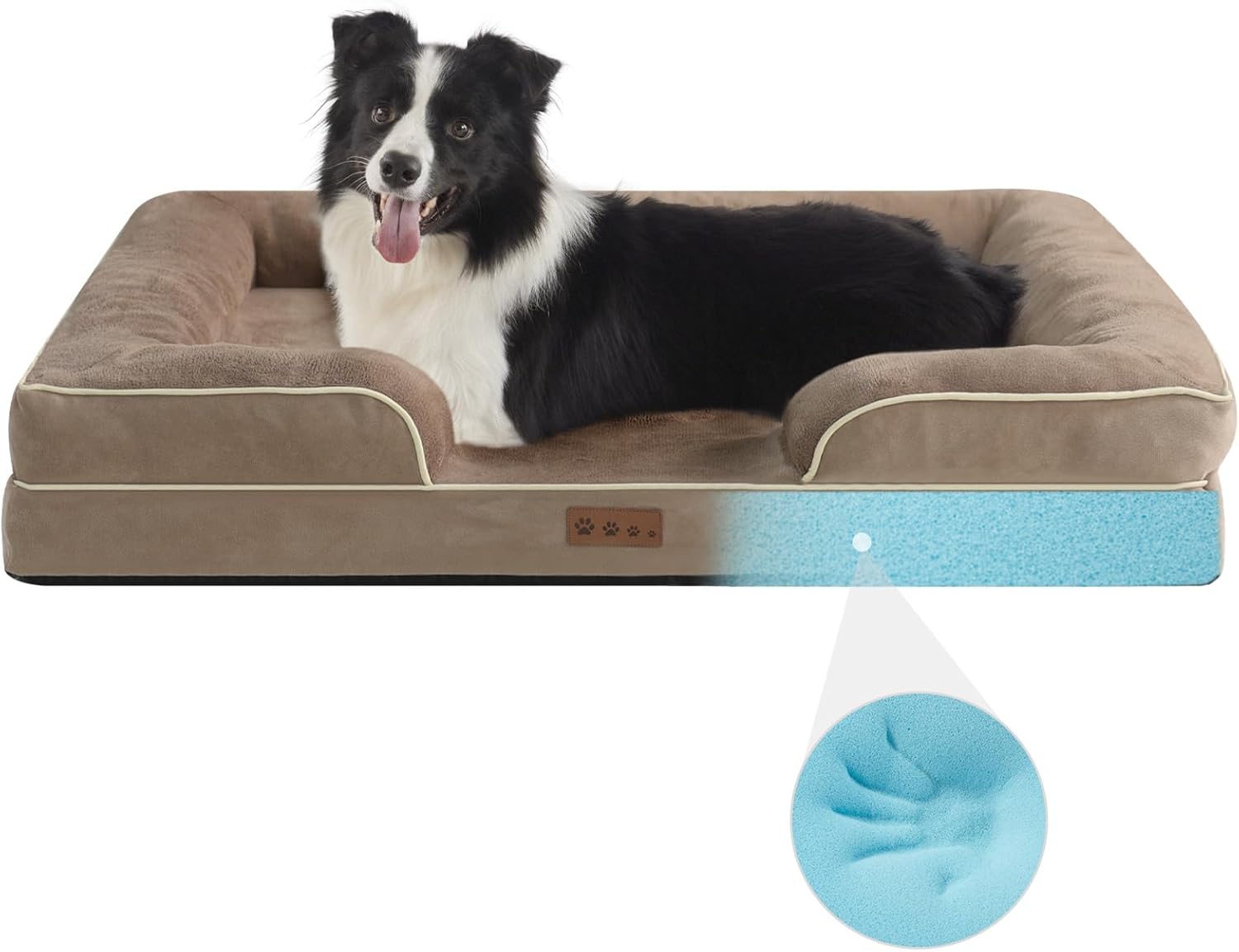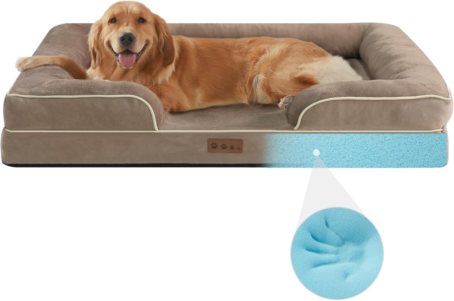 - LARGE DOG BED WITH BOLSTER: This Dog Sofa Bed with 3 sides crushed sponge-filled bolster provides extra support to our dog's neck and head. This orthopedic dog bed is a great choice for senior dogs that need bolster support for bodies