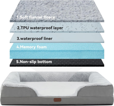 - WATERPROOF & NON-SLIP BOTTOM: There is a waterproof liner between the fleece surface and the memory foam pad that makes the dog bed waterproof. However, the faux linen on the side is not waterproof. A non-slip point on the bottom is not easy to slide, and keeps your dog bed steady, making your furry friend feeling secure and happy