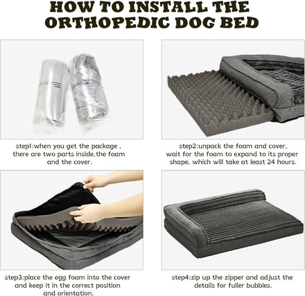 - 【Orthopedic Foam Support】This dog bed is made up of orthopedic egg foam that evenly spreads the pressure on your dog and is well supported, so it's great relief for dogs with arthritis and older dogs to ensure they have a better night's sleep.