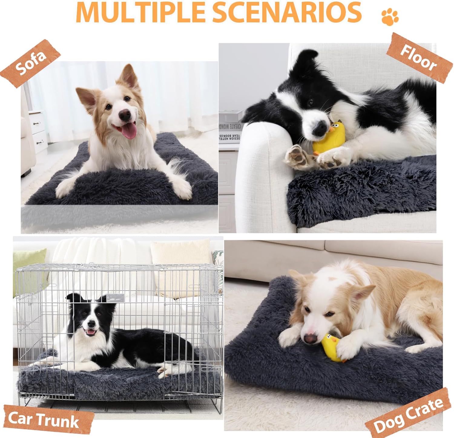 - SIZE DIRECTIONS: Dog Bed measures approximately 35L x 23W x 3H - Inches, thickness upgrade, fluffy, soft, fits 36 inch dog crate bed crate pad & works great as a stand-alone pet bed on floor or sofa, best big dog bed for large medium dogs & cats 41-70 pounds. Grey rectangle dog bed can bed used indoors, outdoors or in a car.