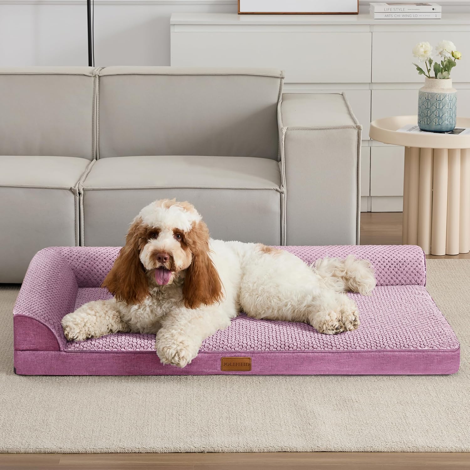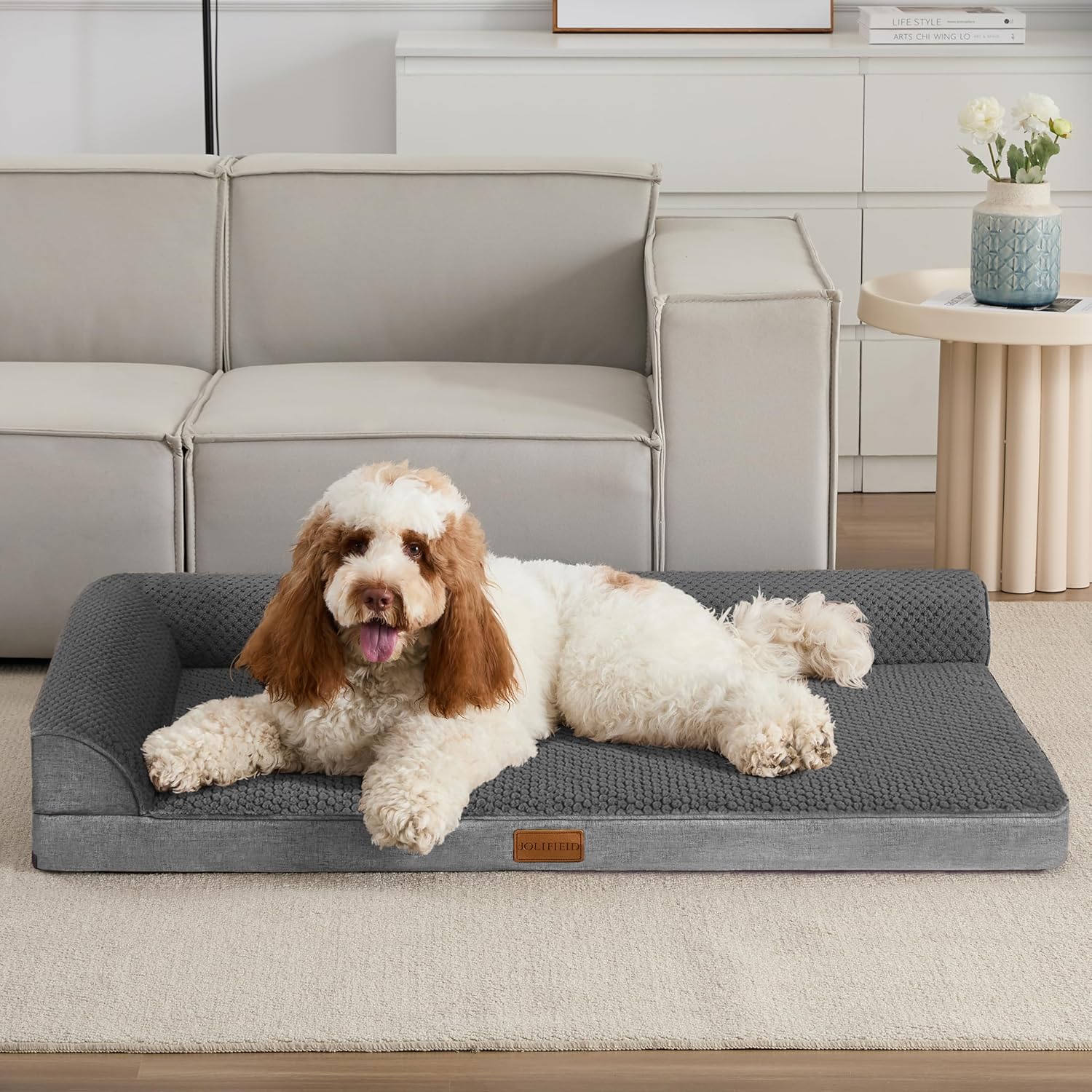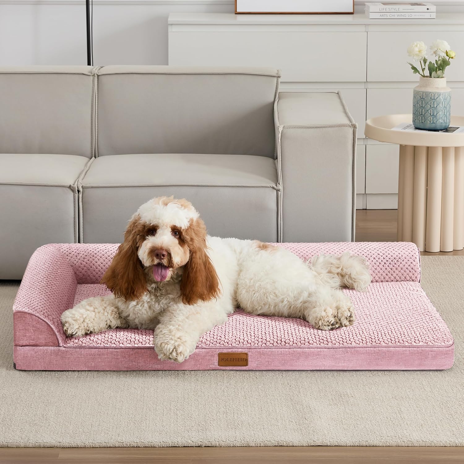 - L-Shaped Dog Sofa Bed: L shaped design raised sides provide extra support for our pet's head and neck; while two flat sides providing plenty of room for pets to stretch out; our dog beds for large dogs enhance snuggling and burrowing comfort