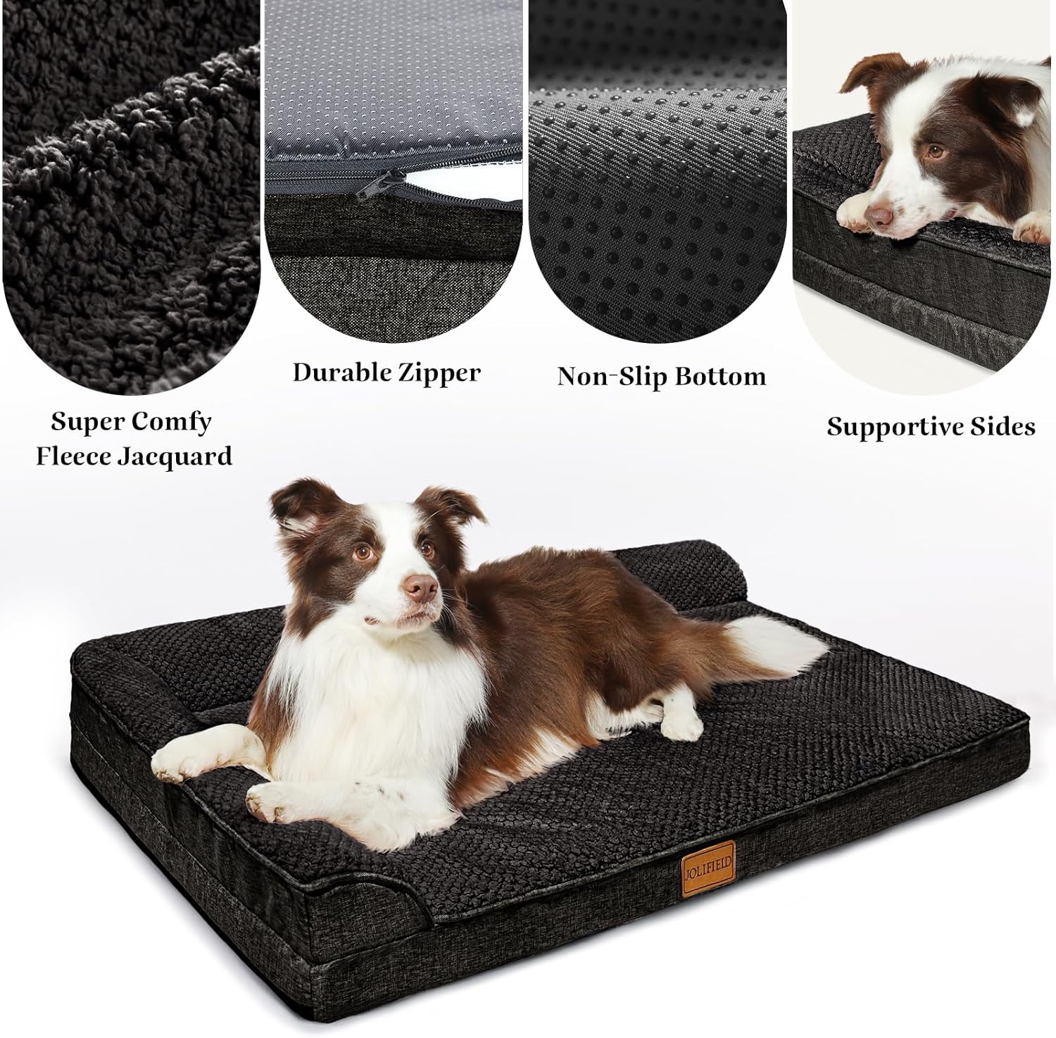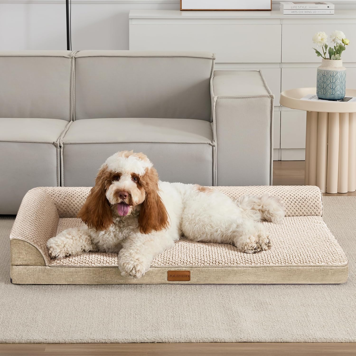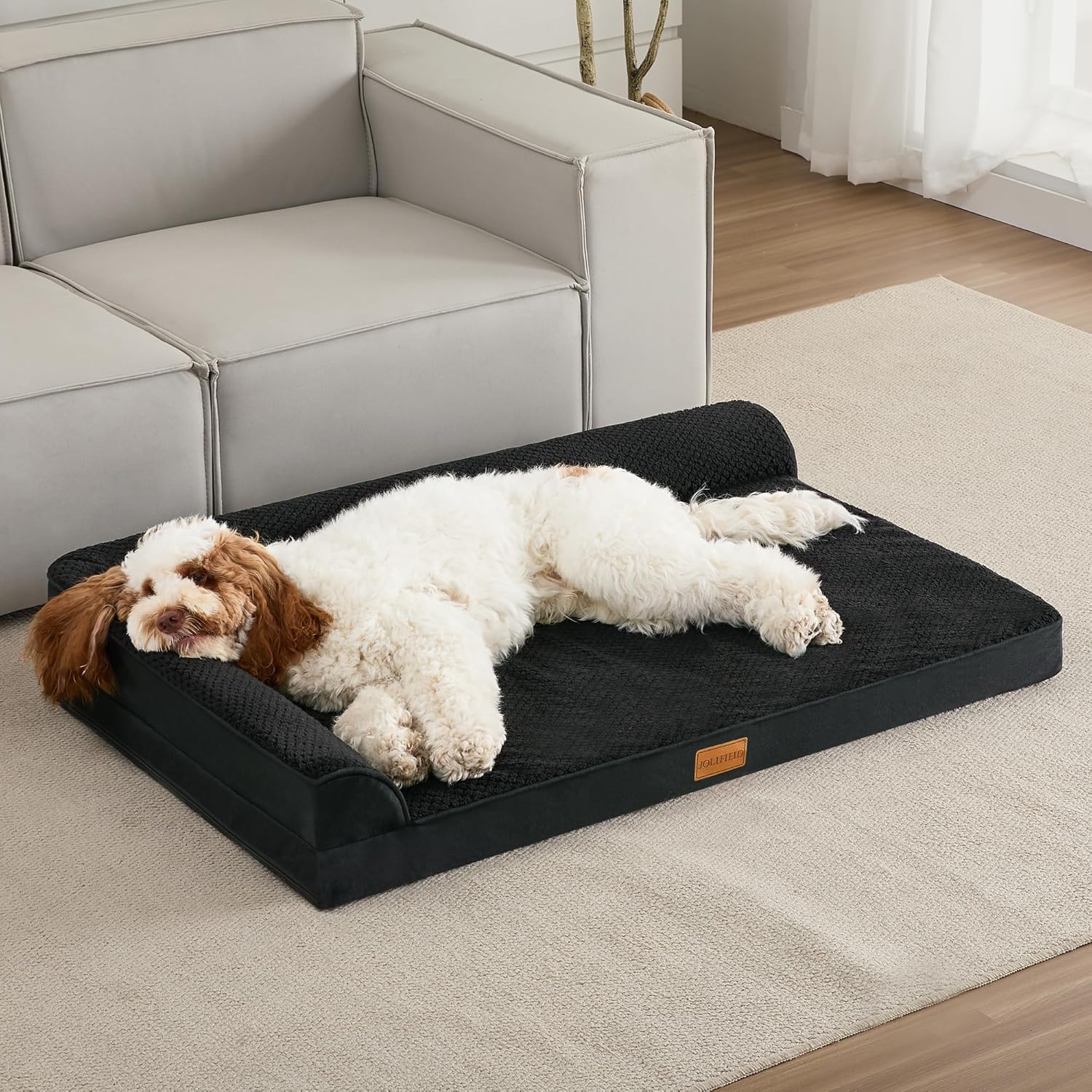- L-Shaped Dog Sofa Bed: L shaped design raised sides provide extra support for our pet's head and neck; while two flat sides providing plenty of room for pets to stretch out; our dog beds for large dogs enhance snuggling and burrowing comfort