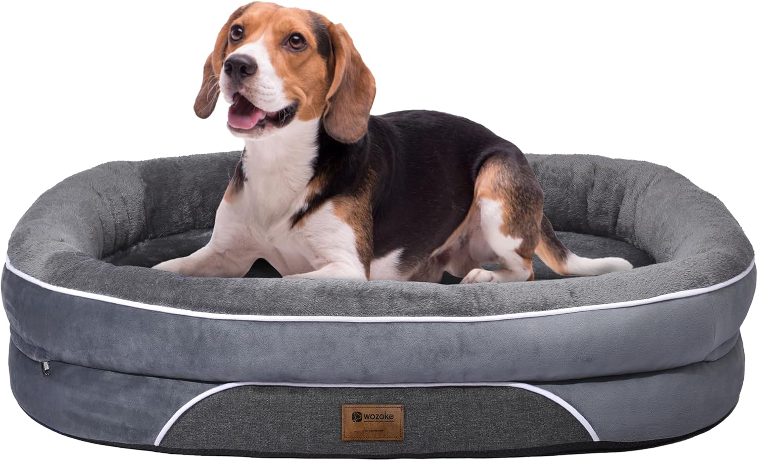 - 360° Surrounded Support: This 360° full circle design creates a secure sleeping environment, making dog bed large ideal for dogs who prefer a more enclosed space; The bolsters also served as a headrest that provides additional support for the neck and back; Whether your dog likes to curl up or stretch out, this orthopedic dog bed accommodates all sleeping positions