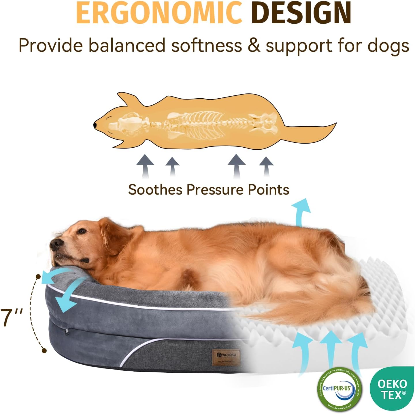 - Orthopedic Egg Crate Foam: With Ergonomic concept, our large dog beds features CertiPUR US certified orthopedic egg crate foam; The high density egg crate foam offers balanced softness and orthopedic support, evenly distributes dog's weight, and helps relieve muscle and joint pressure; Ideal bed for dogs at any age and conditions