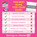 - FUR FRIENDLY PUPPY DIAPERS: These pet-friendly doggy diapers are made with fur-friendly, repositionable fasteners, which help to safely tuck her in just right without sticking to her fur.