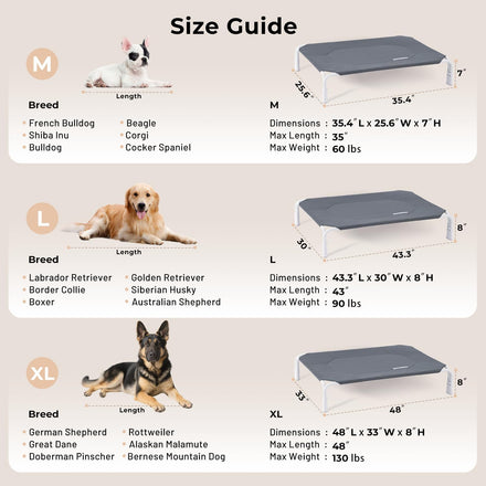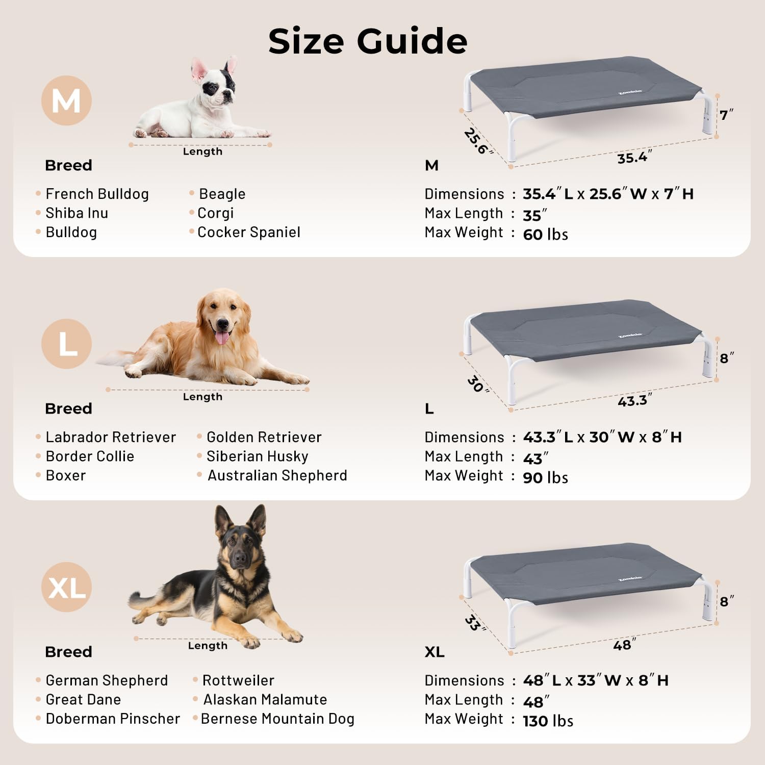 - All-Weather Cooling: Built for indoor/outdoor adventures. Breathable, water-resistant mesh elevates pets 8" for 360° airflow and quick drying. Ideal for poolside, camping, or patio use—keeps dogs cool in summer!