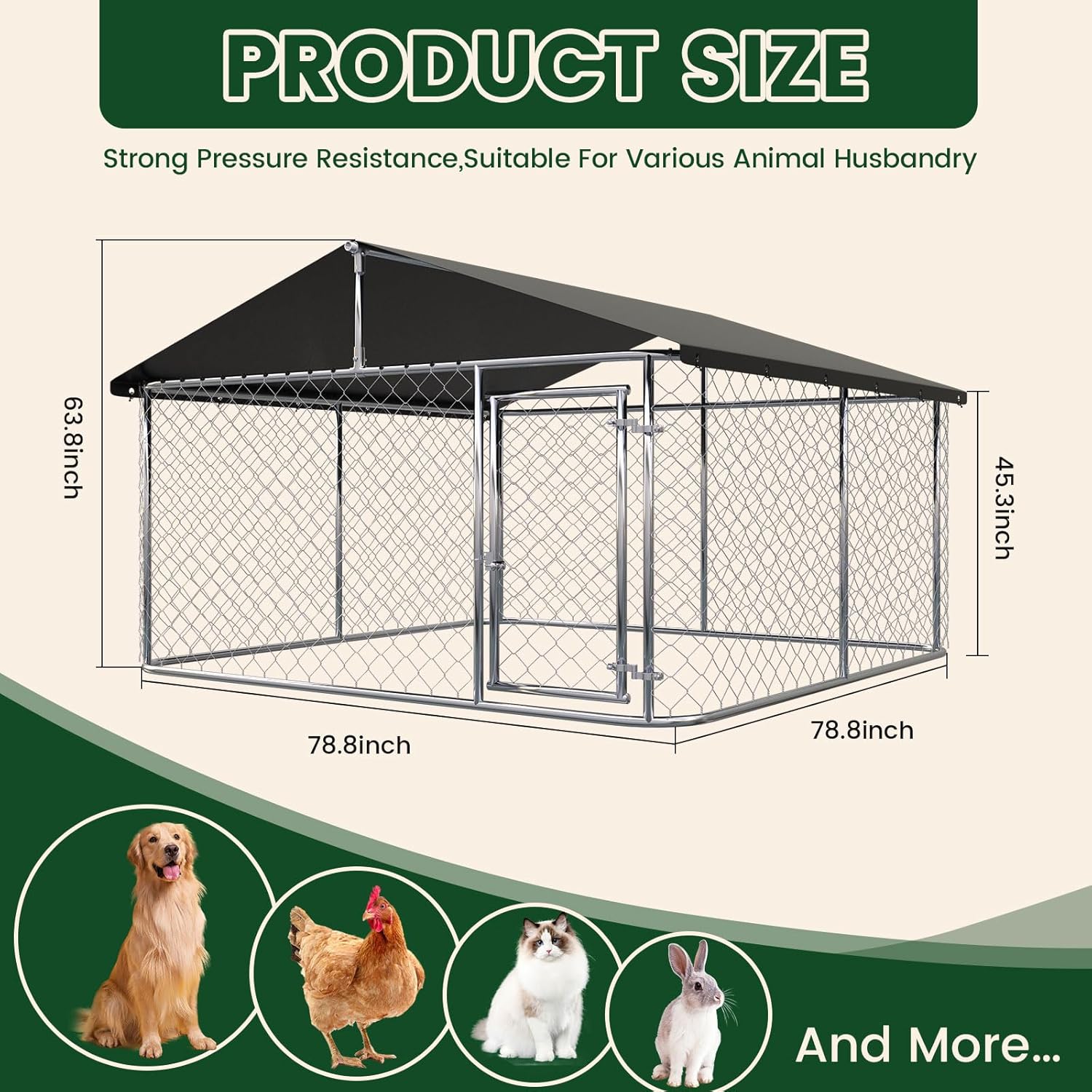 - Spacious Play Area:Dimensions: 79”W x 79”D x 65”H. This outdoor dog kennel is perfect for small to medium-sized dogs, providing an ideal space for training, resting, and outdoor play.