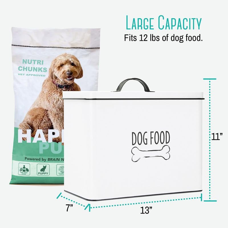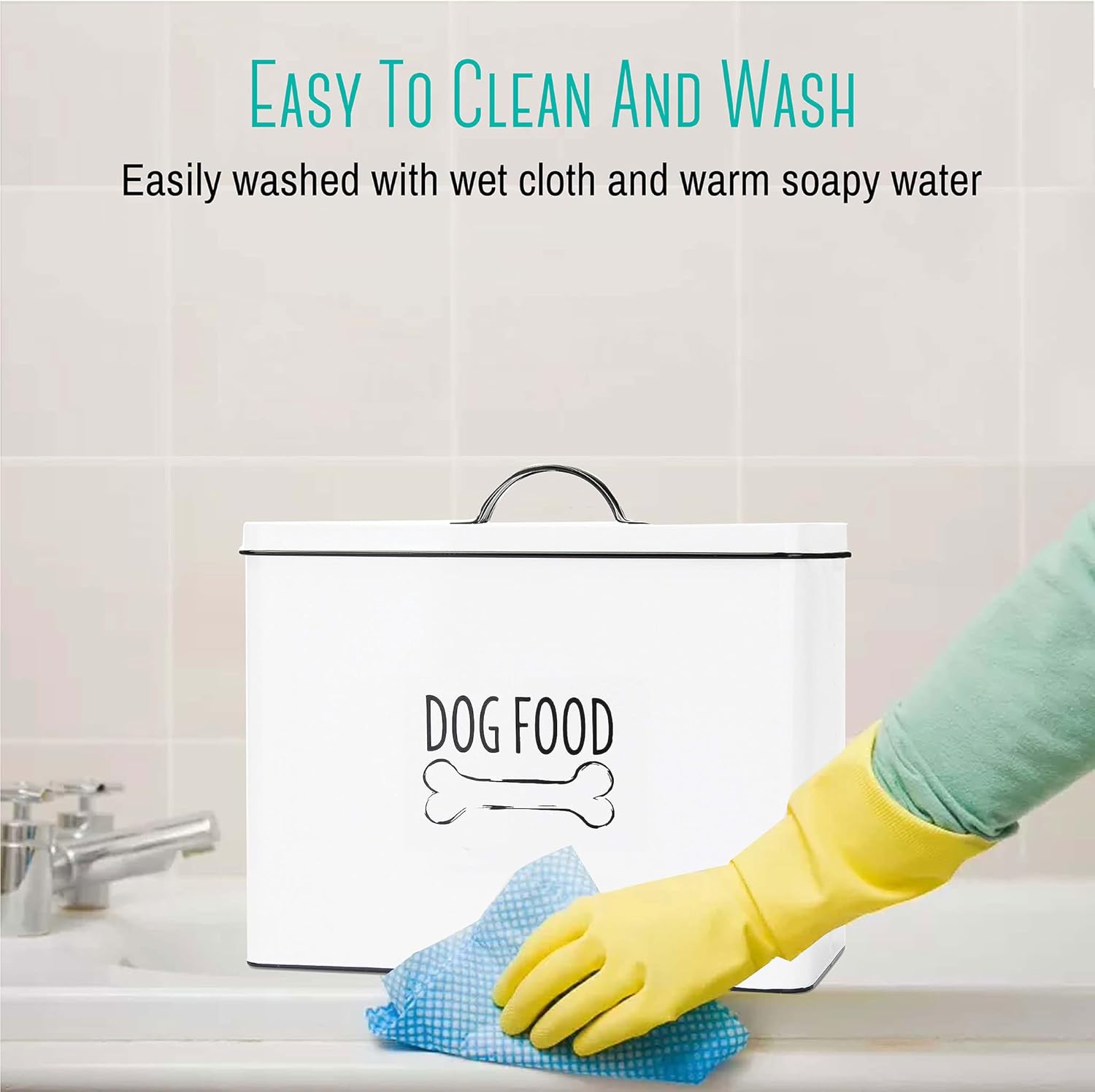 - Durable Pet Food Storage: Unlike breakable dog food containers, our dog food bin is made of durable powder-coated galvanized steel that's resistant to chipping, fading, wearing, and scratching.