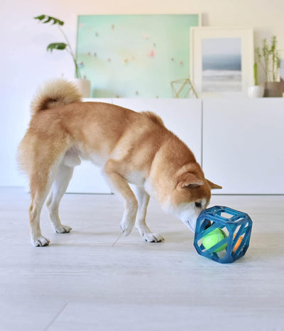 The Puzzle Cube from Outward Hound is a fun and exciting 2-in-1 dog puzzle toy for your curious canine! Made from an outer rubber TPE cage and two removable squeaky tennis balls, this toy is designed to stimulate your pup's hunting skills while also providing them with a fun squeaky challenge. The two squeaky tennis balls, once released, can be used in games of toss, catch, and fetch for hours of fun! The outer cage can be easily cleaned separately with soap and warm water. SAFETY & CARE: When choosing a toy, make sure to choose an appropriate size toy for your dog. No toy is indestructible. ALWAYS supervise your dog when using a toy of any kind. Inspect toys regularly for damage and remove and replace if broken, or if parts become separated, as serious injury may result. Intended for dogs only. Keep out of reach of children.