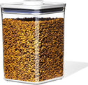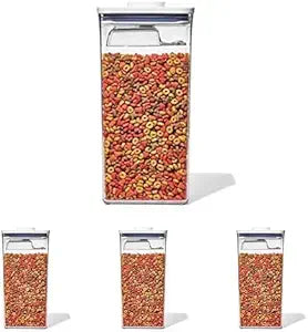 Instead of storing a bag of pet food in the garage (where pests can get to it) or the floor of your pantry (where pieces are bound to fall out and make a mess), consider the OXO 6.0 Qt/5.7 L Pet POP Container. It can easily hold up to 6.5 pounds of dog food or 4.5 pounds of cat food. The clear, square base makes for neat and streamlined storage, which means it’ll look nice on your counter or on a pantry shelf. And the lid creates an airtight seal, comes with a detachable ½ cup scoop for serving and can easily be taken apart for cleaning. For best results, always use the button to open and close. Do not carry POP Containers by the lid. Dishwasher safe.