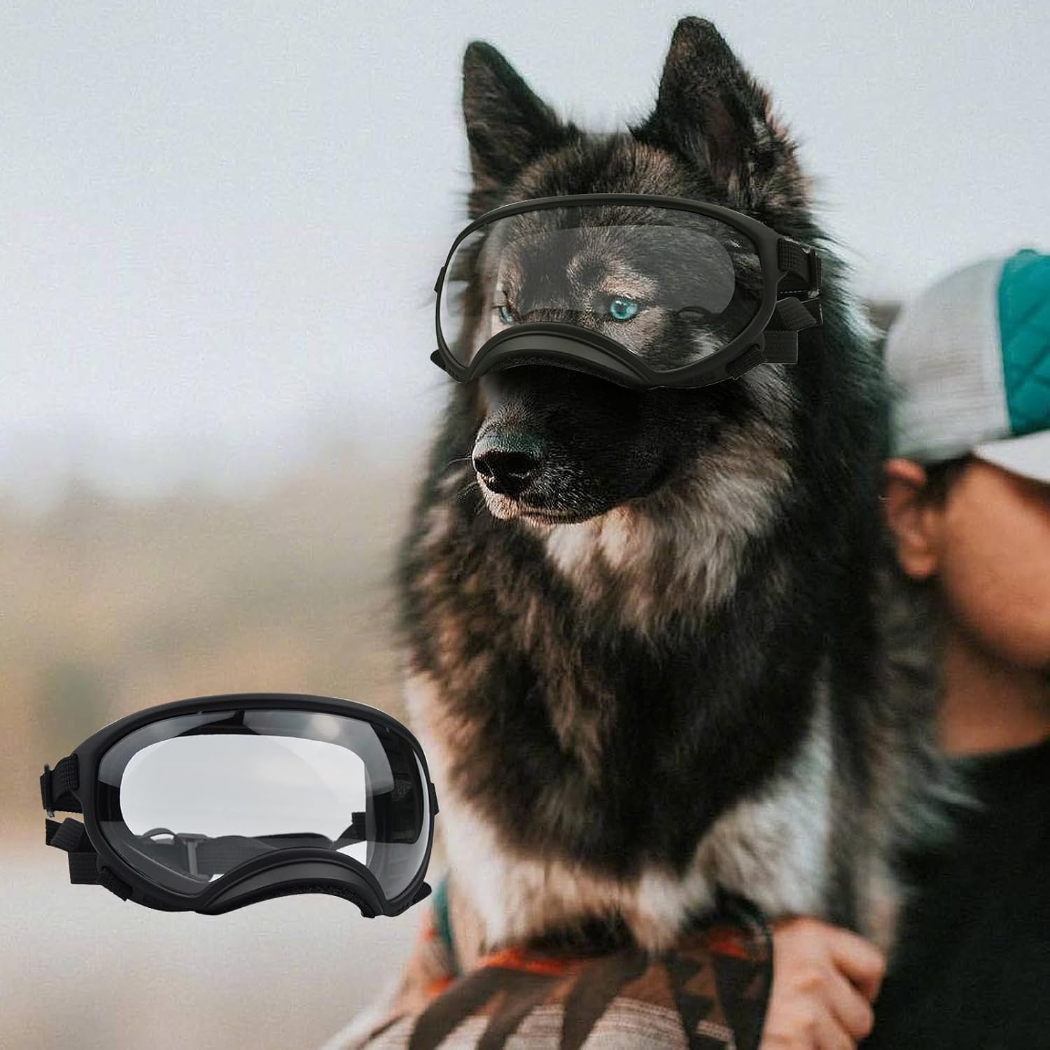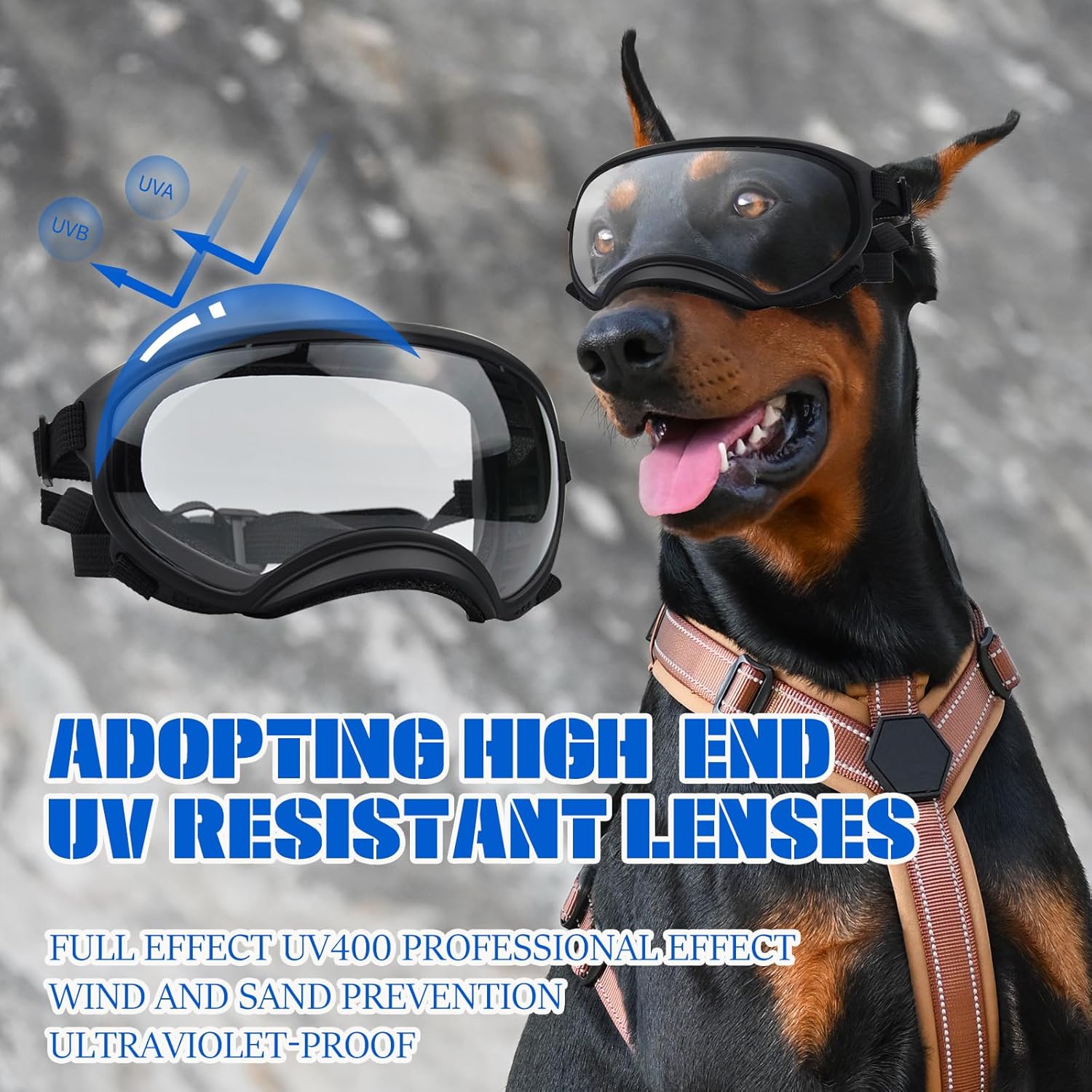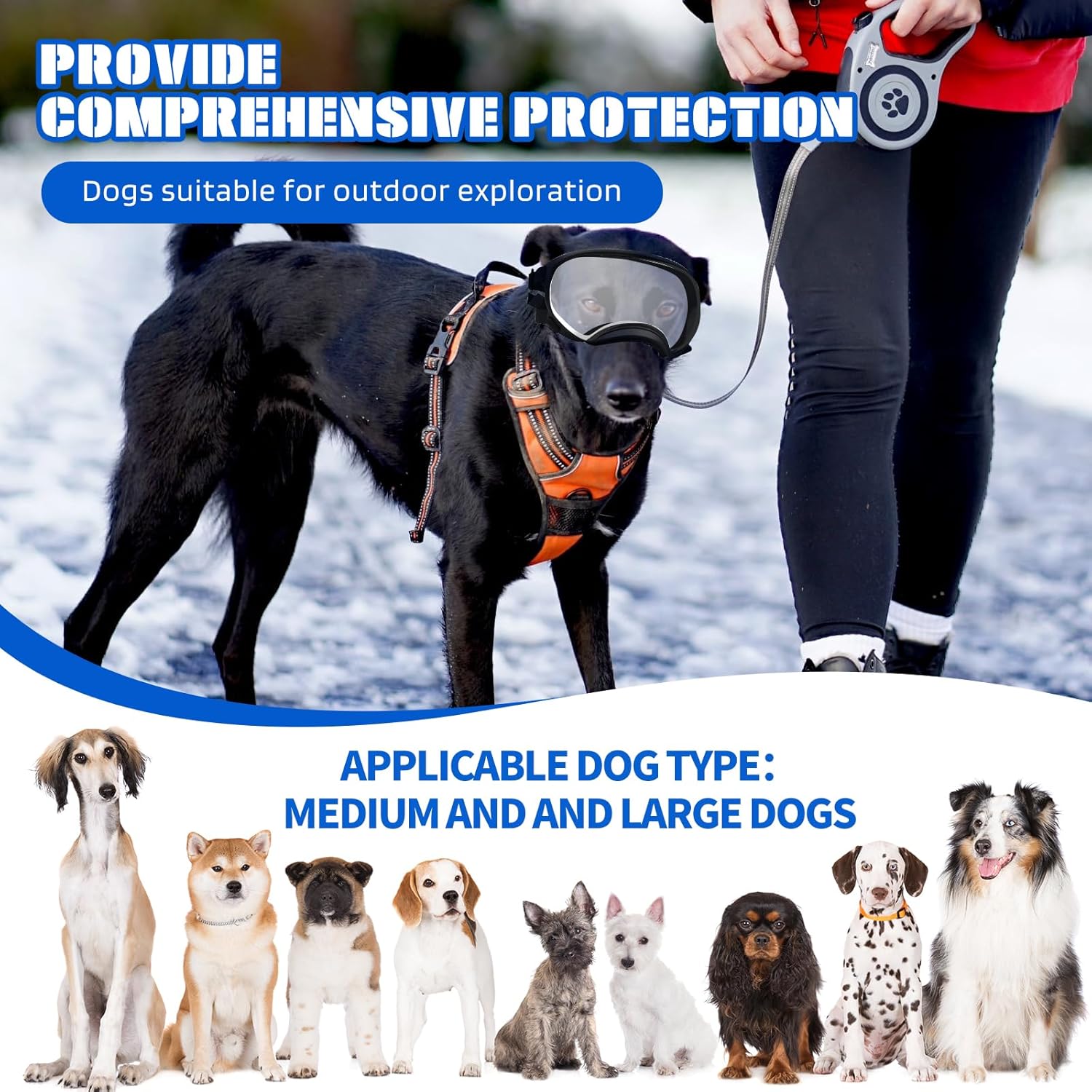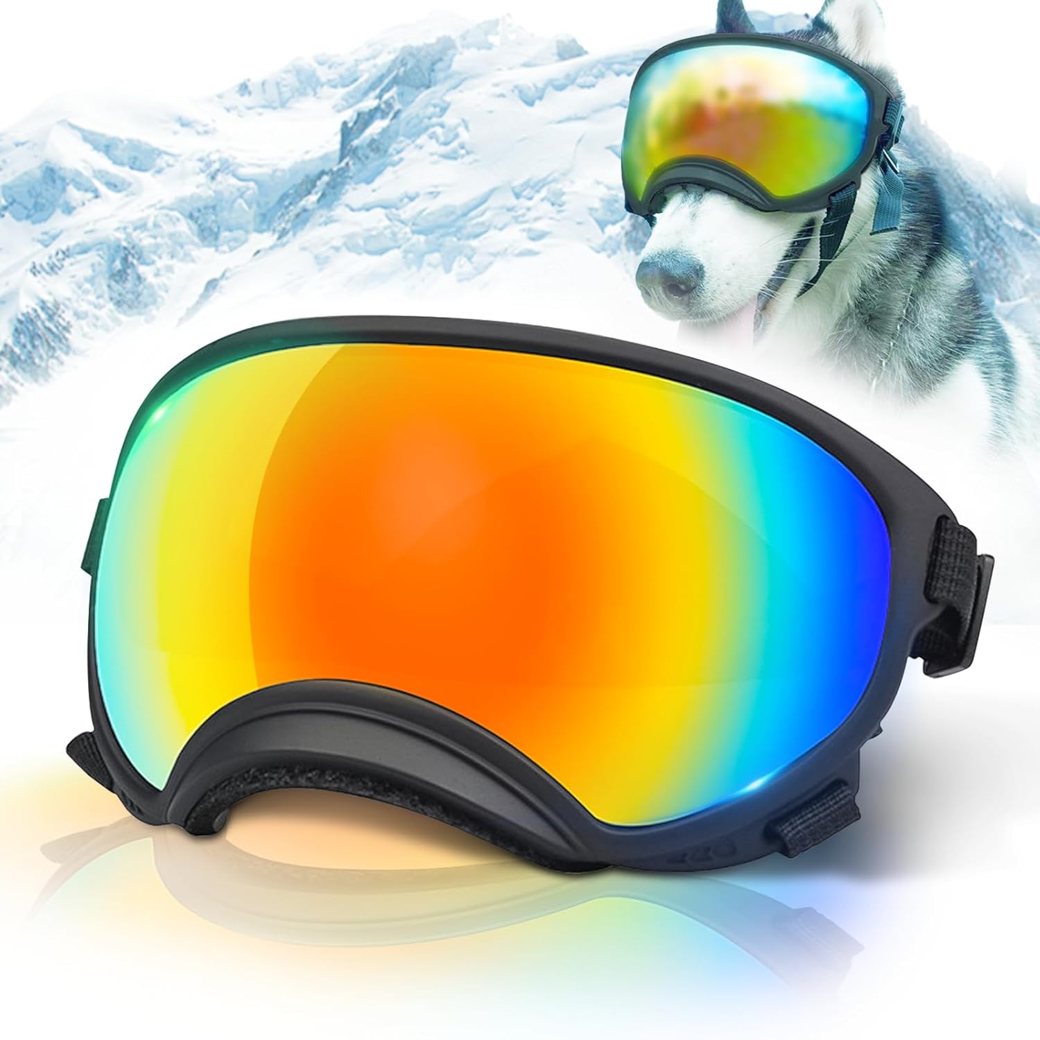 - Protección completa: las gafas para perros de raza mediana están hechas de lentes de policarbonato de alta calidad resistentes a los rayos UV, resistentes a los impactos e inastillables. Diseño transpirable que añade mayor comodidad. Gran diseño de espejo curvado diseñado para perros, se ajusta más a la nariz del perro, no se cae fácilmente y proporciona una mejor visión del perro. Cinturón ajustable y diseño de cierre de bloqueo fuerte, uso más seguro.