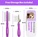 Pain-Free Dematting Comb Kit for Dogs & Cats, Dematting Rake & Detangling Dual-Side Comb Set, Dematting Brush for Dogs & Cats, Pet Grooming Tools Kit for Poodle Doodle & All Long Haired Pets