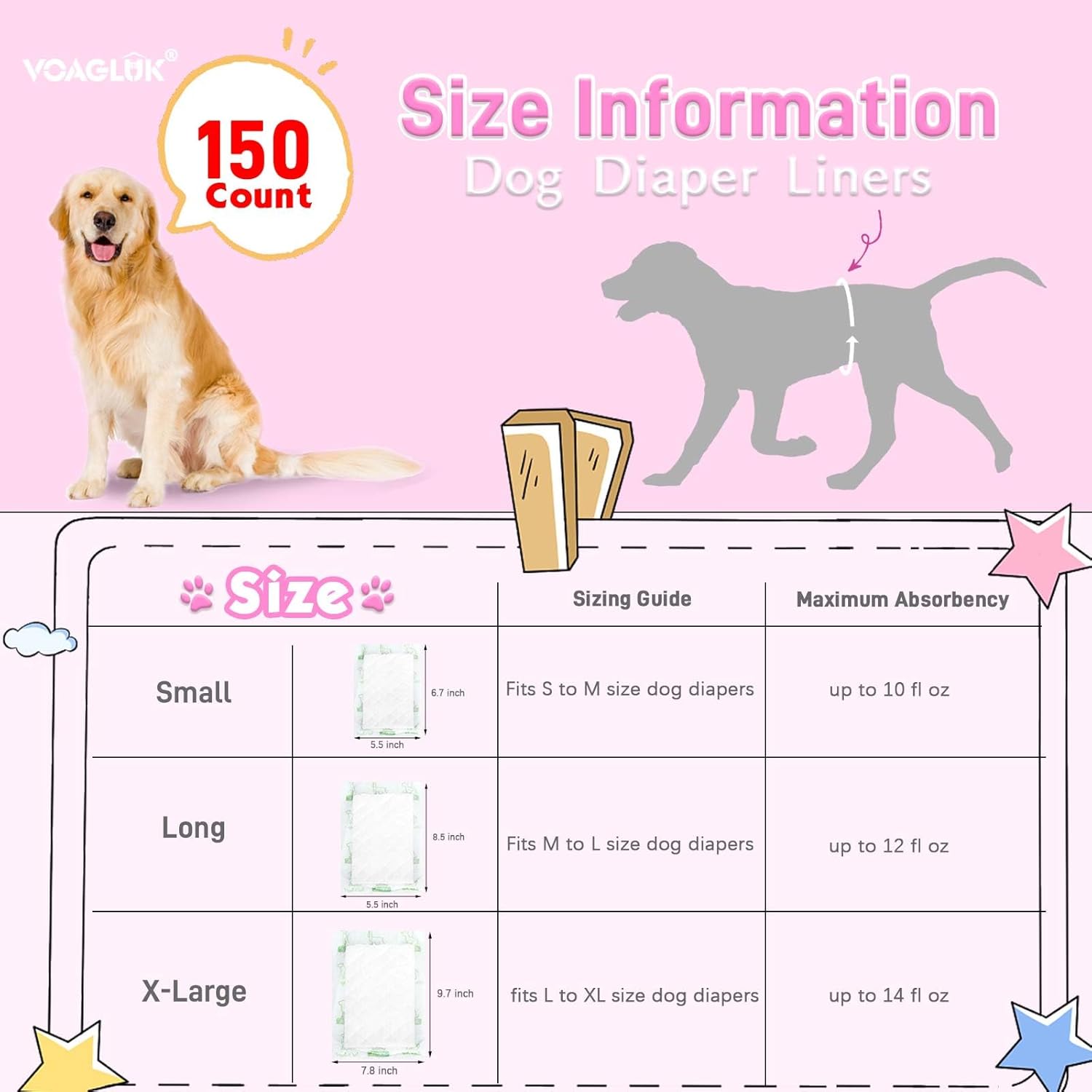 Tamaño largo: Se adapta a pañales de perro de tamaño M a L / absorbe hasta 12 onzas líquidas.