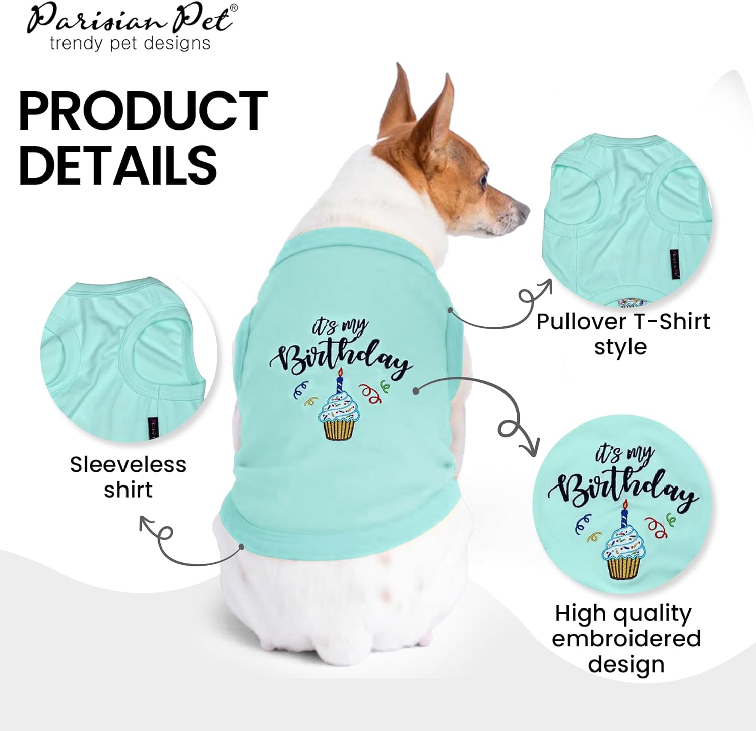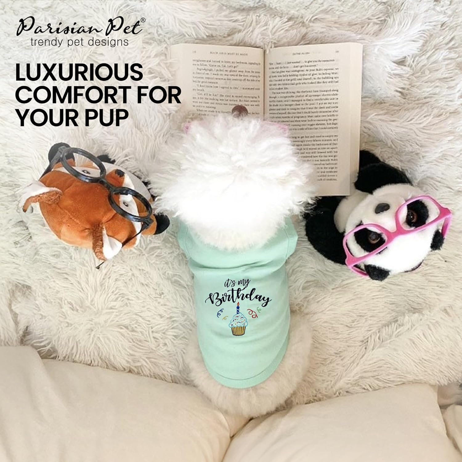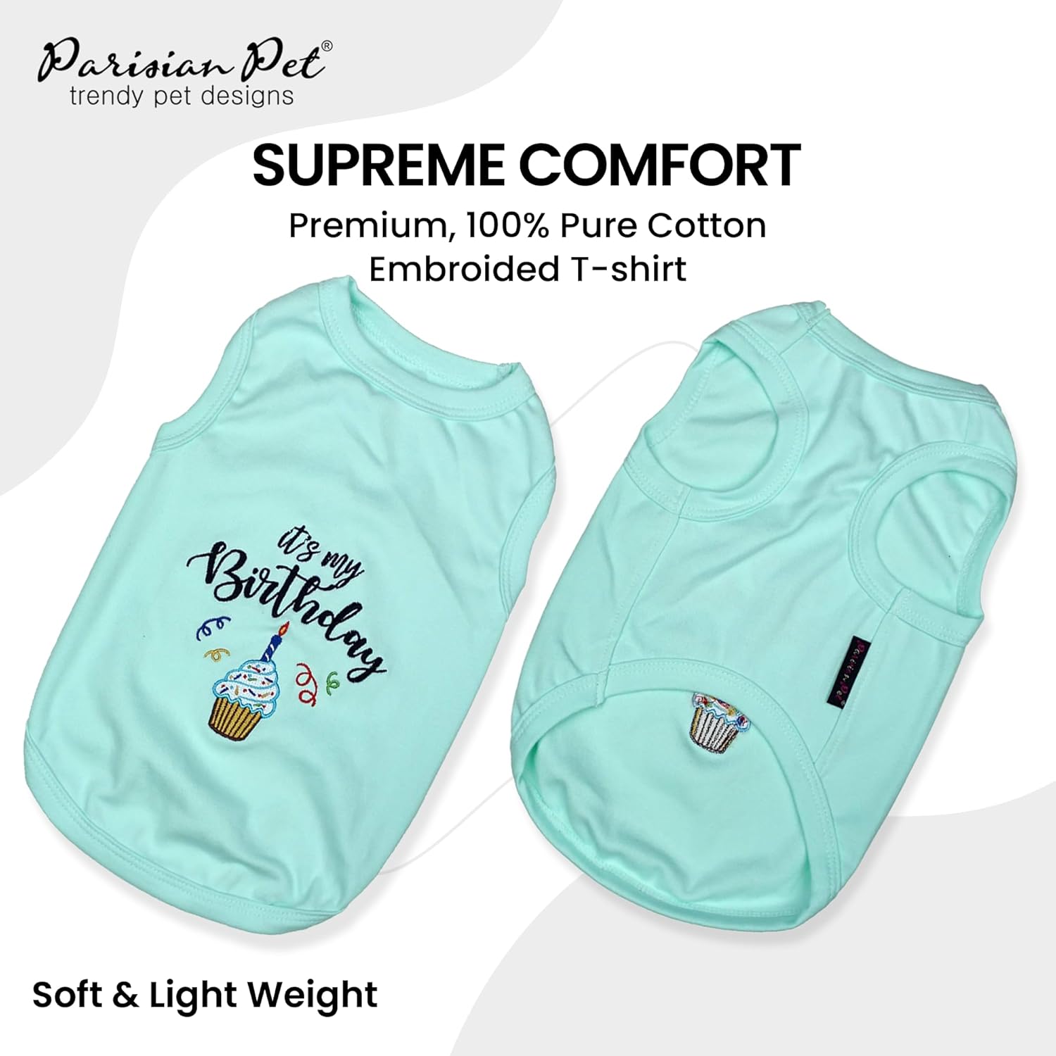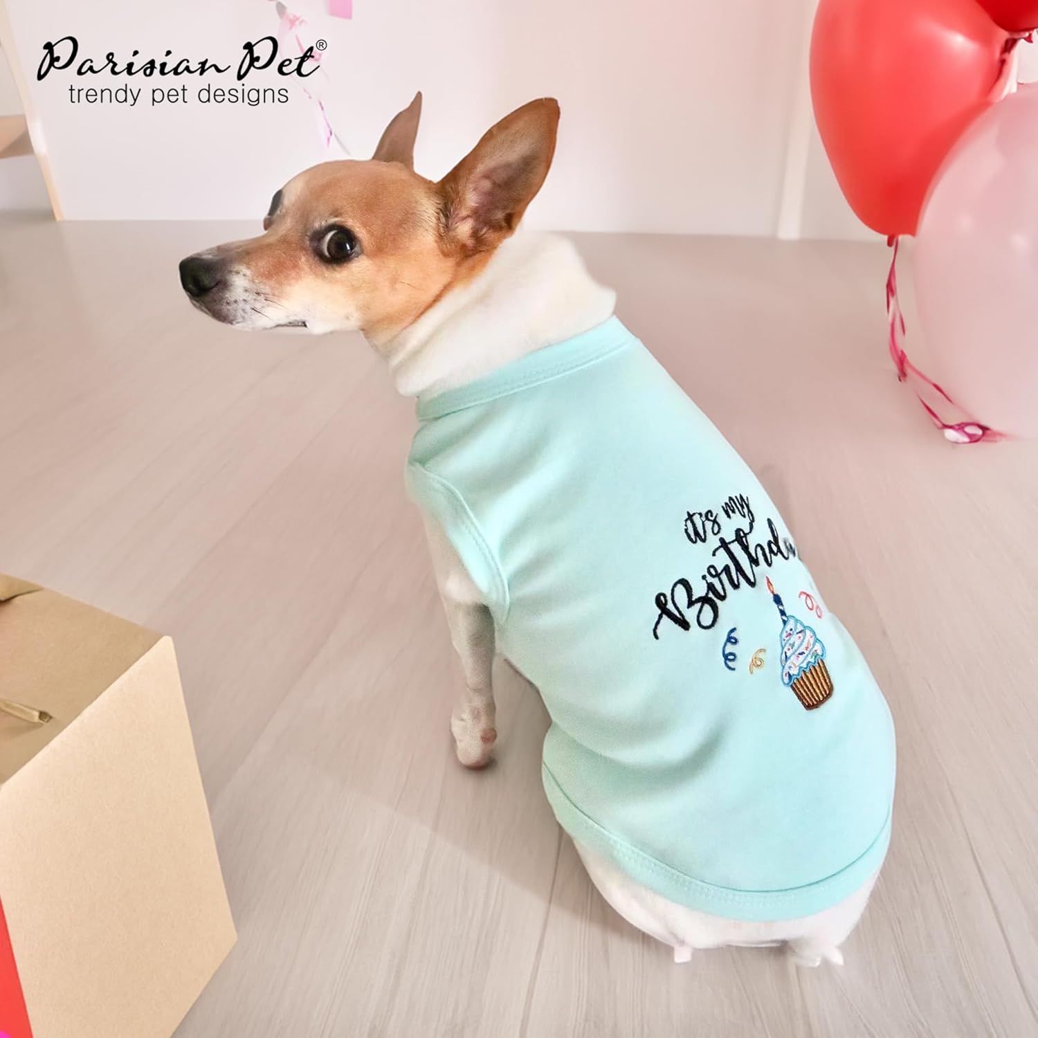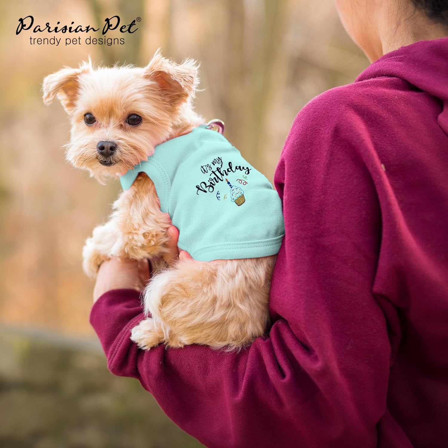 - [ UPGRADE PET STYLE WITH UNMATCHED QUALITY ] - Parisian Pet shirts for dogs are tailored with a round neckline and sleeveless design, birthday dog shirt is crafted to prioritize your pet's comfort above all. Made from 100% breathable cotton and meticulously stitched to perfection, the dog tshirt washable feature ensures effortless maintenance while preserving quality wash after wash. These dog t-shirts redefine luxury for your furry companion with unparalleled style and comfort with every wear.