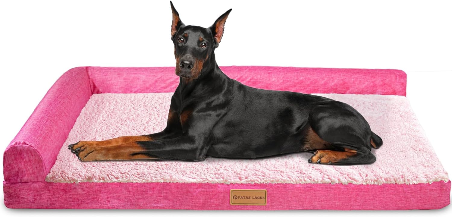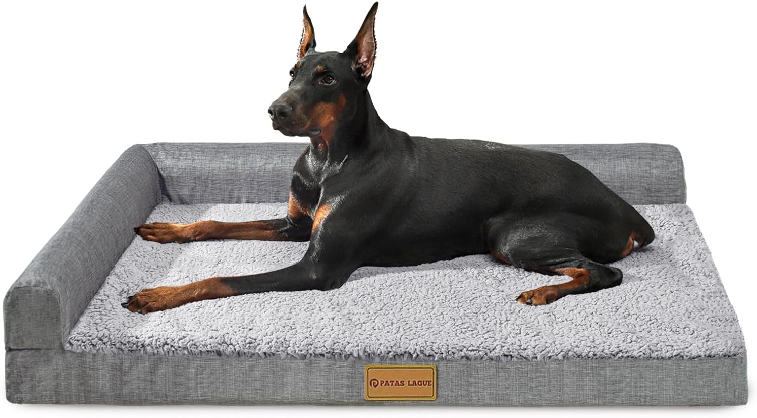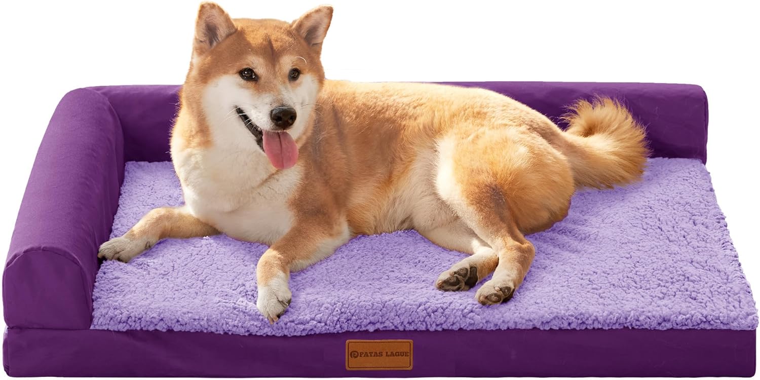 - Sofá cama para perros en forma de L: diseño en forma de L con bordes de espuma que proporciona apoyo adicional para la cabeza y el cuello de la mascota; dos lados planos proporcionan mucho espacio para que las mascotas se estiren; mejora la comodidad de acurrucarse y excavar