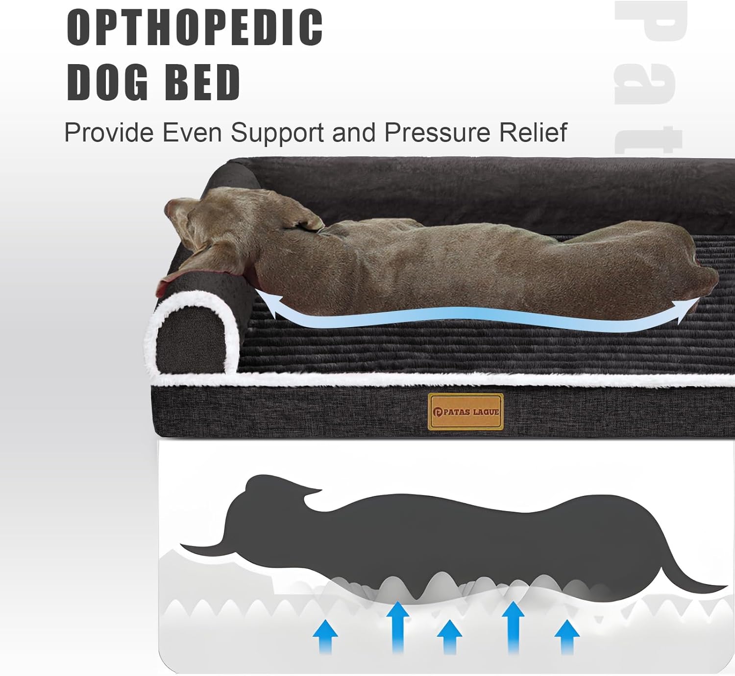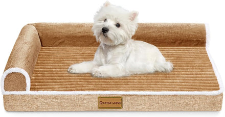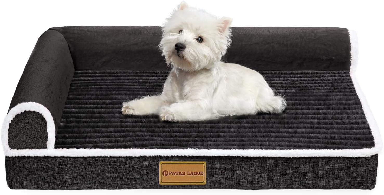 - L-Shaped Dog Sofa Bed: L shaped design with foam edges provides extra support for pet's head and neck; two flat sides provide plenty of room for pets to stretch out; enhances snuggling and burrowing comfort