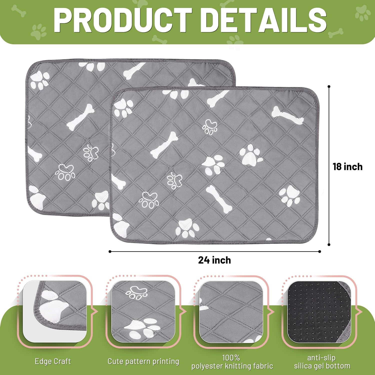 - 【Packaging & Service】 - You can receive 2PCS 18"x 24" resuable pee pads. These washable dog pee pads can be cleaned and alternative use, which would be more convenient. If you have any issues, please feel free to contact us.