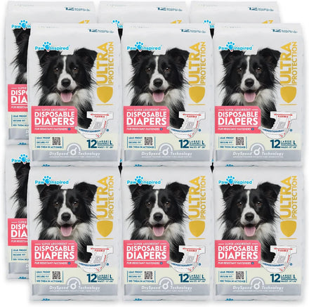 - LEAK PROOF: Paw Inspired specializes in dog incontinence products and only provides the best quality for your fur baby. These dog diapers are equipped with a leak proof super absorbent core, comfortable and secure fitting waistband, breathable bottom layers, and gathered leak proof edges. These diapers are also equipped with easy and painless repositionable fur resistant fasteners.