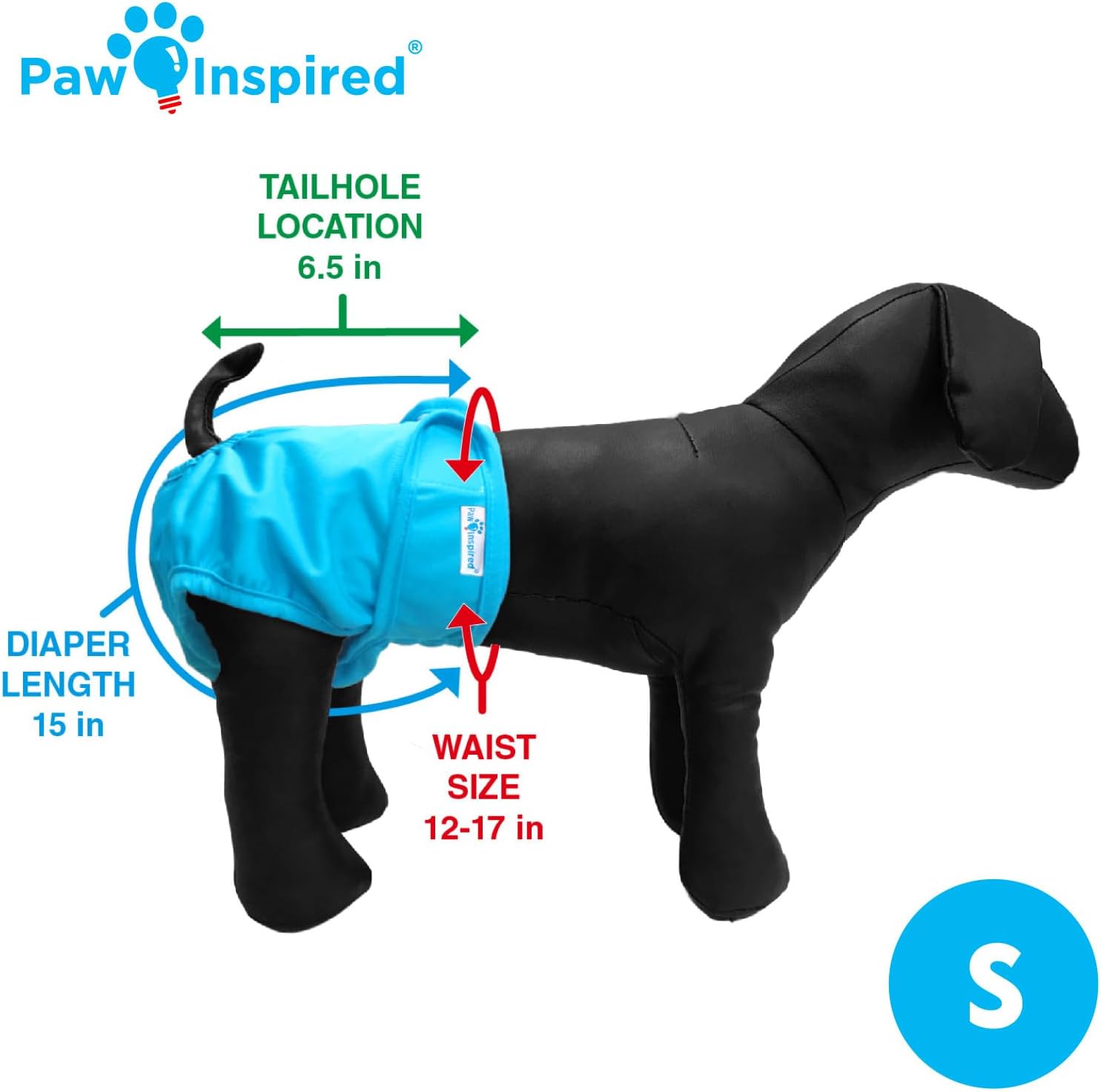 Refer to the Paw Inspired sizing chart and choose the size that fits BOTH your pet’s diaper length and waist size.