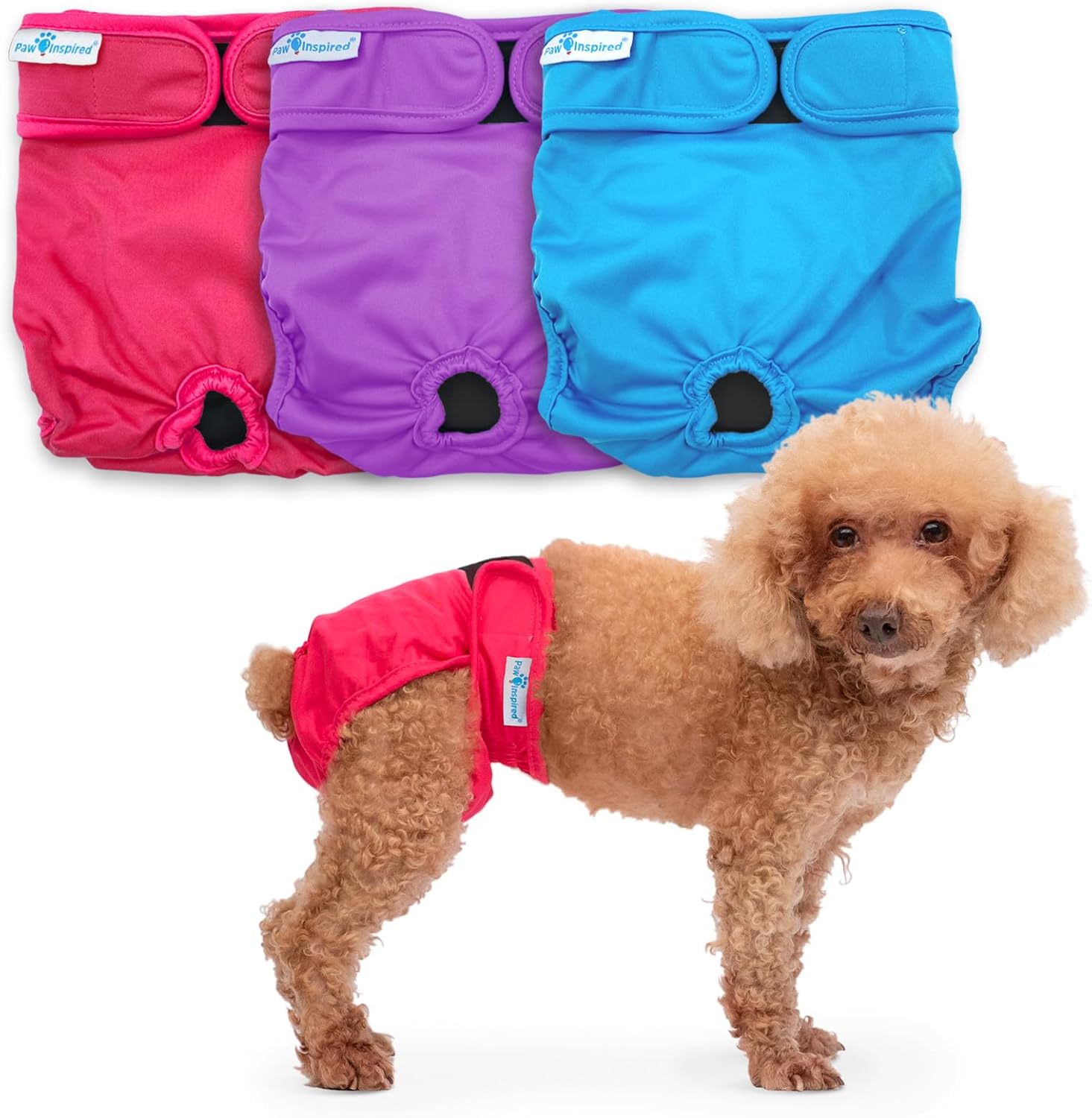 - DURABLE WASHABLE FABRICS: Paw Inspired Washable Female Dog Diapers are made with care and durable machine-washable fabric. The fabric of these reusable female dog diapers will last for hundreds of washes, saving thousands of dollars over disposable diapers. With high-quality cloth and fabric, we assure the perfect dog diaper fit even after many washes.