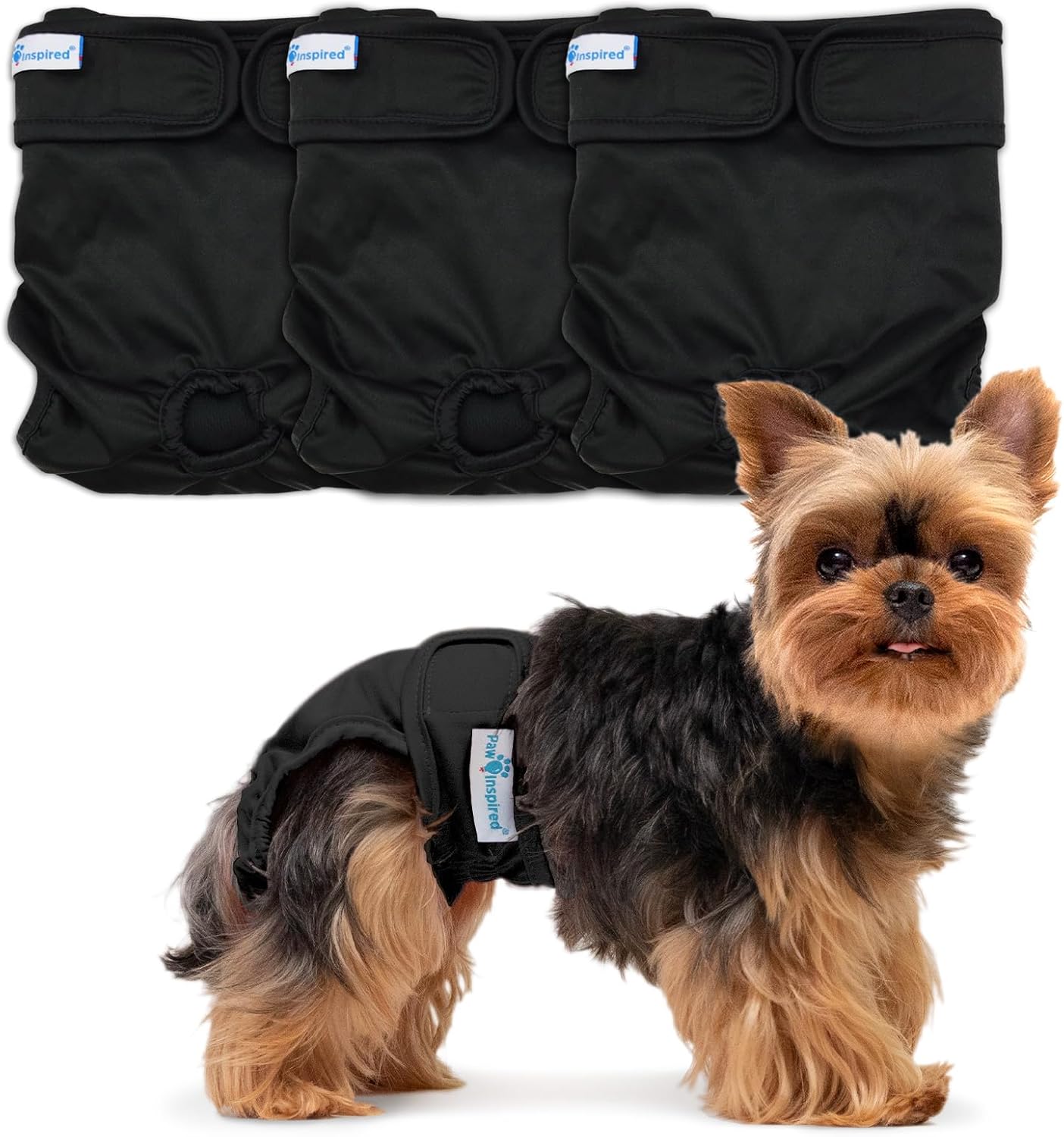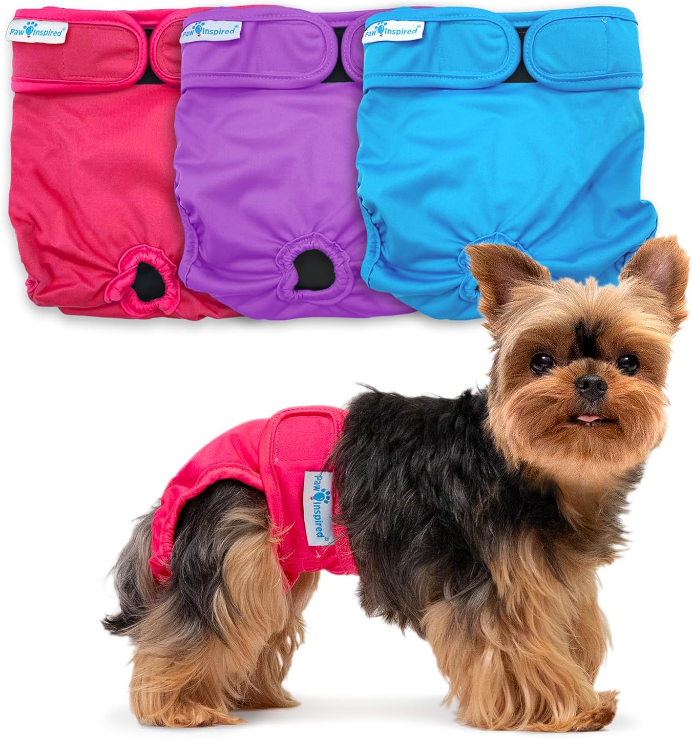 - BEST DOG DIAPERS: Paw Inspired Washable and Reusable Dog Diapers are the best on the market. Our diaper sizing chart is in our product images to assure suitable sizing, so diapers stay on and stay put. These reusable diapers will fit many dog breeds including challenging body shapes like dachshunds, yorkies, pugs, French bulldogs, bulldogs, tailless breeds, and many other dog breeds. Paw Inspired Washable and Reusable Female Dog Diapers are the perfect fit!