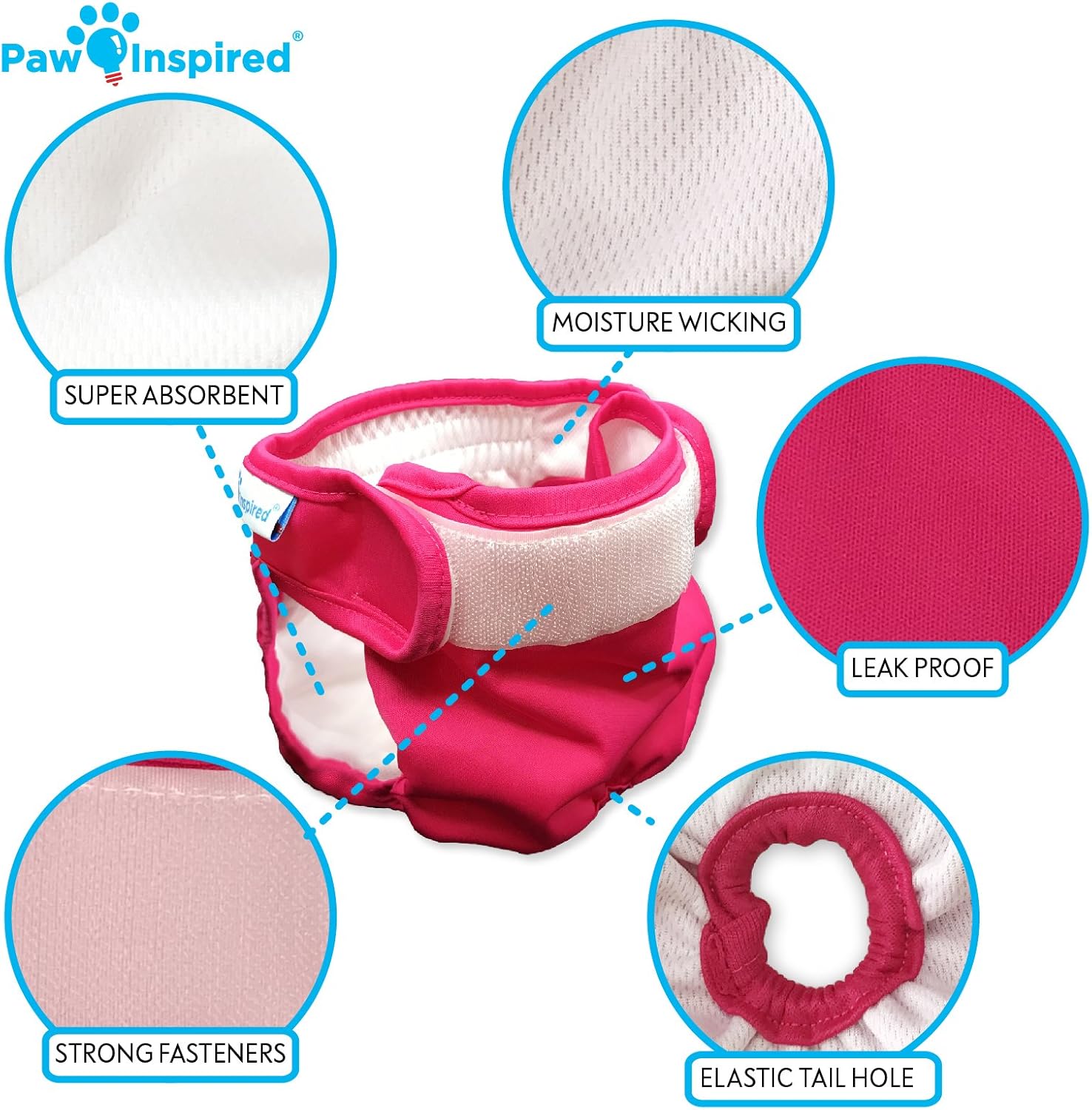 - LEAKPROOF : Paw Inspired specializes in dog incontinence products and only provides the best quality for your dogs. These reusable dog diapers are equipped with a super absorbent leakproof core, a comfortable and secure waistband, breathable bottom layers, and leakproof edges. These dog diapers are also equipped with easy and repositionable fur-resistant fasteners. These cloth diapers work great alone or as diaper covers. Check out our diaper liners and diaper booster pads for extra absorbency.