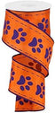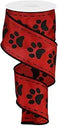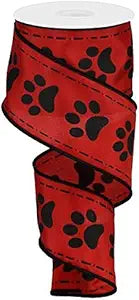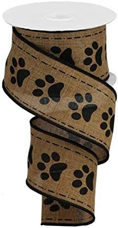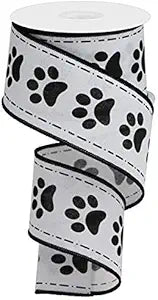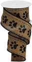 A ten yard roll of 2.5" tan and black paw print patterned ribbon. Includes wired edge. 10 yards or 30 feet per roll.
