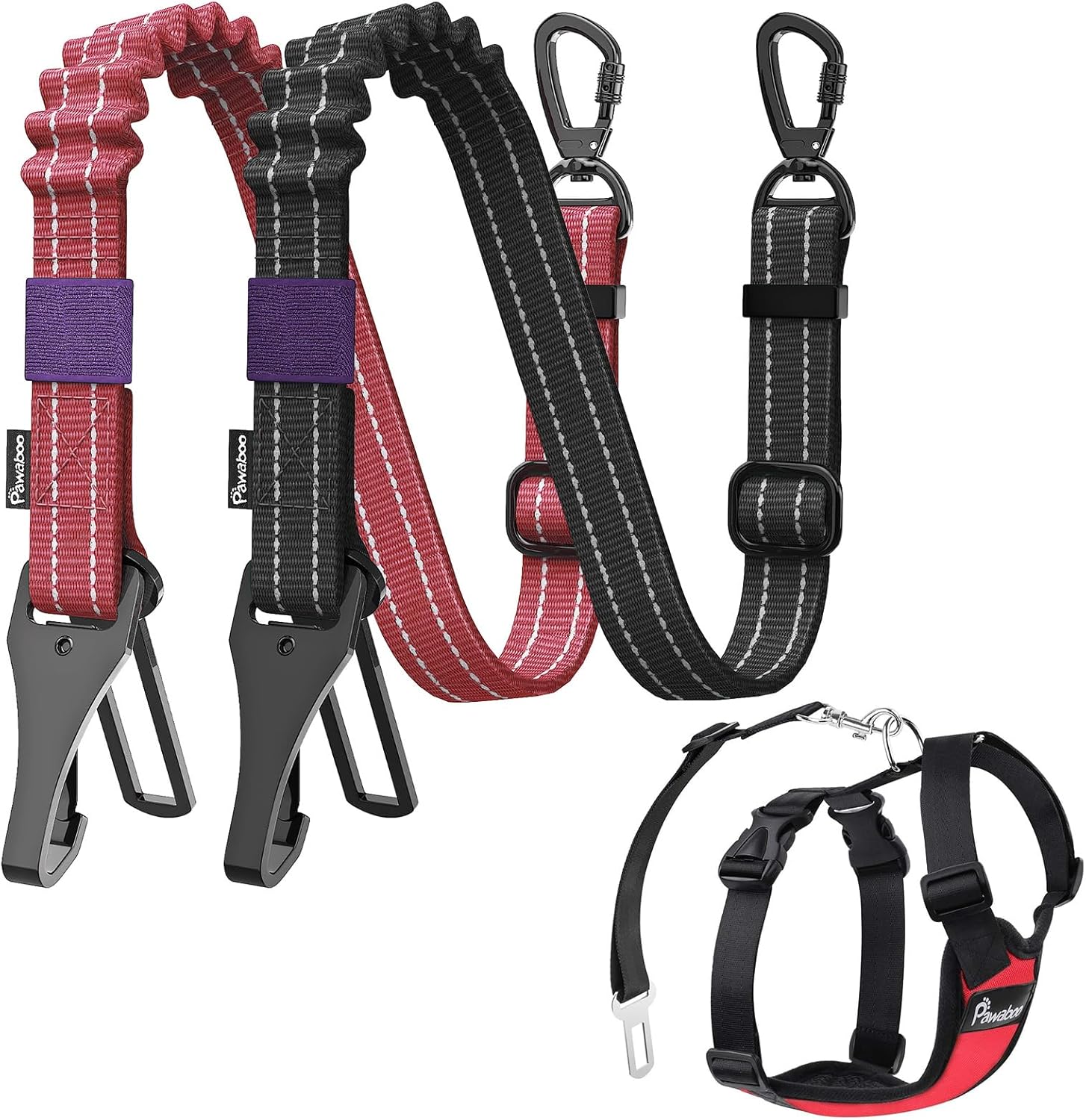 - Elastic Bungee, Shock Absorption: The dog safety seatbelt has multiple strands of elastic cords inside, maximize cushioning the shock and vibration against the dog when car brakes or turns sharply, ensuring the dog can comfortably sit, stand or lie down in the car.