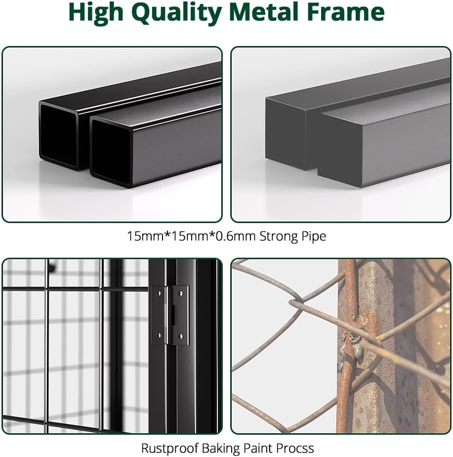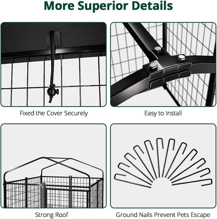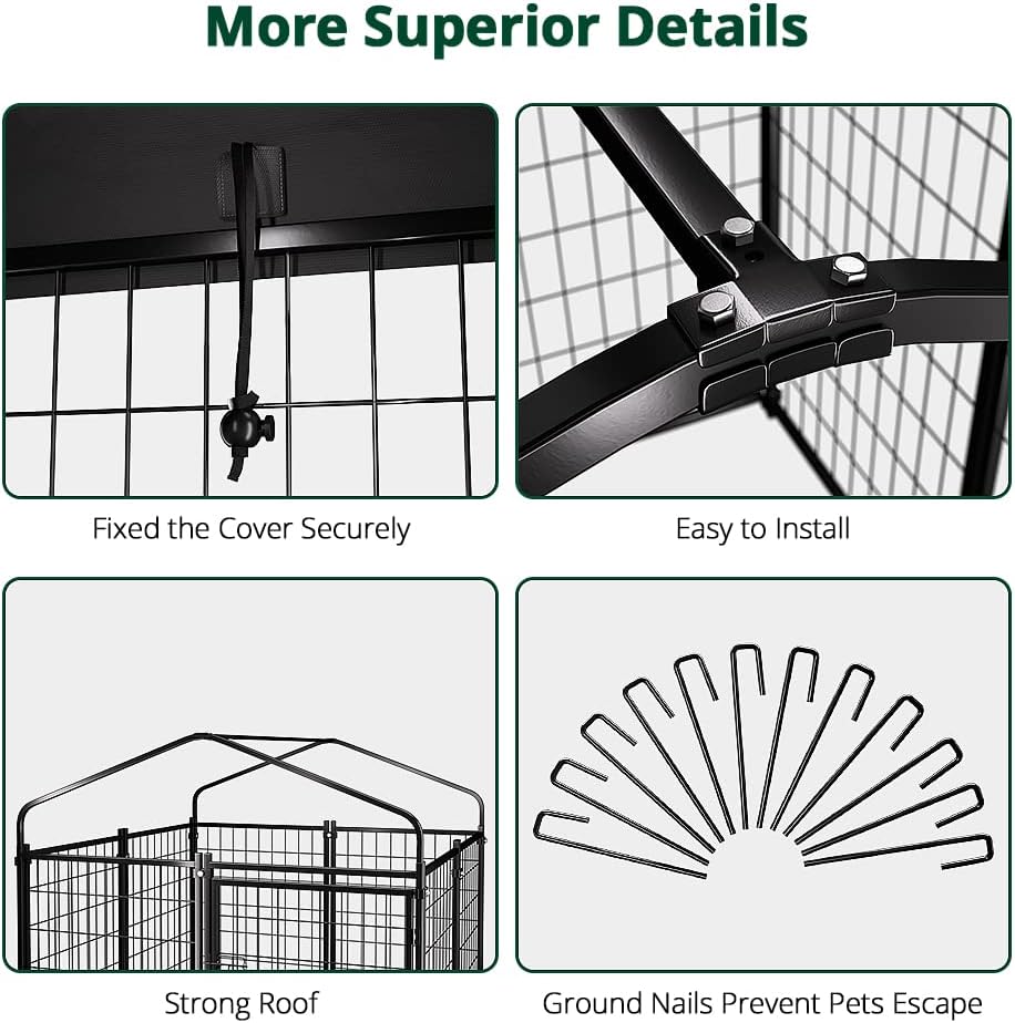 - Waterproof Removable Roof: The dog enclosure outdoor roof is made of UV-resistant and waterproof Oxford cloth, fitting outdoor dog run. Elastic ropes hold it firmly, preventing wind blow-away. The UV-resistant coating prevents fading and cracking