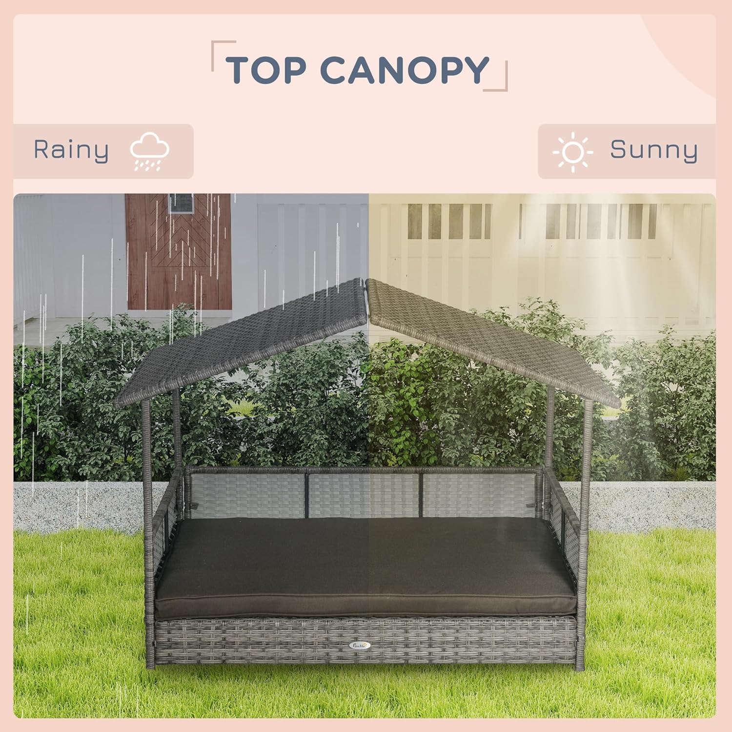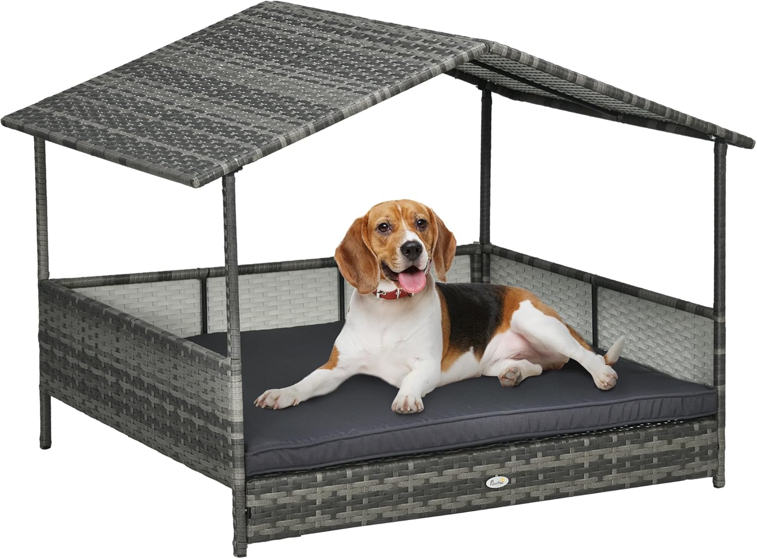 - Quality PE Rattan: Crafted from sturdy PE rattan, this outdoor dog bed with canopy is built to withstand the elements, providing a reliable shelter for your pet.