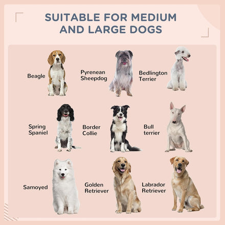 - Wicker Dog Bed Information: Overall Dimensions: 46.1" W x 33.5" D x 35" H. Bed Size: 39.4" W x 32.3" D x 2" H. Weight Capacity: 110 lbs. Suitable for medium to large-sized dogs, such as Border Collie, Satsuma, Golden Retriever, Labrador.