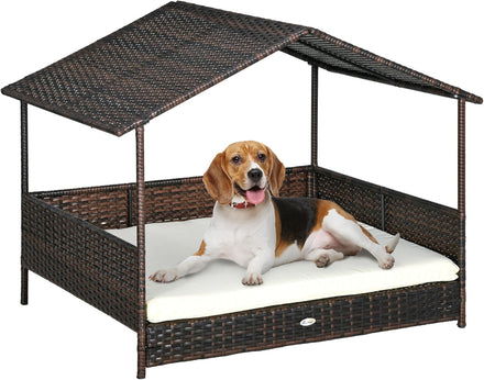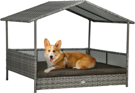 Get your furry friend feeling like the canine king of the cot with our PawHut rattan dog house! Designed with a stylish hut shape and three-side railings, it adds pizzazz to any corner while ensuring your pup's safety. The included cushion provides coziness and the removable cover with a zipper makes cleaning a breeze. Give your pet the royal treatment with this trendy and practical dog house that'll make tails wag with joy!