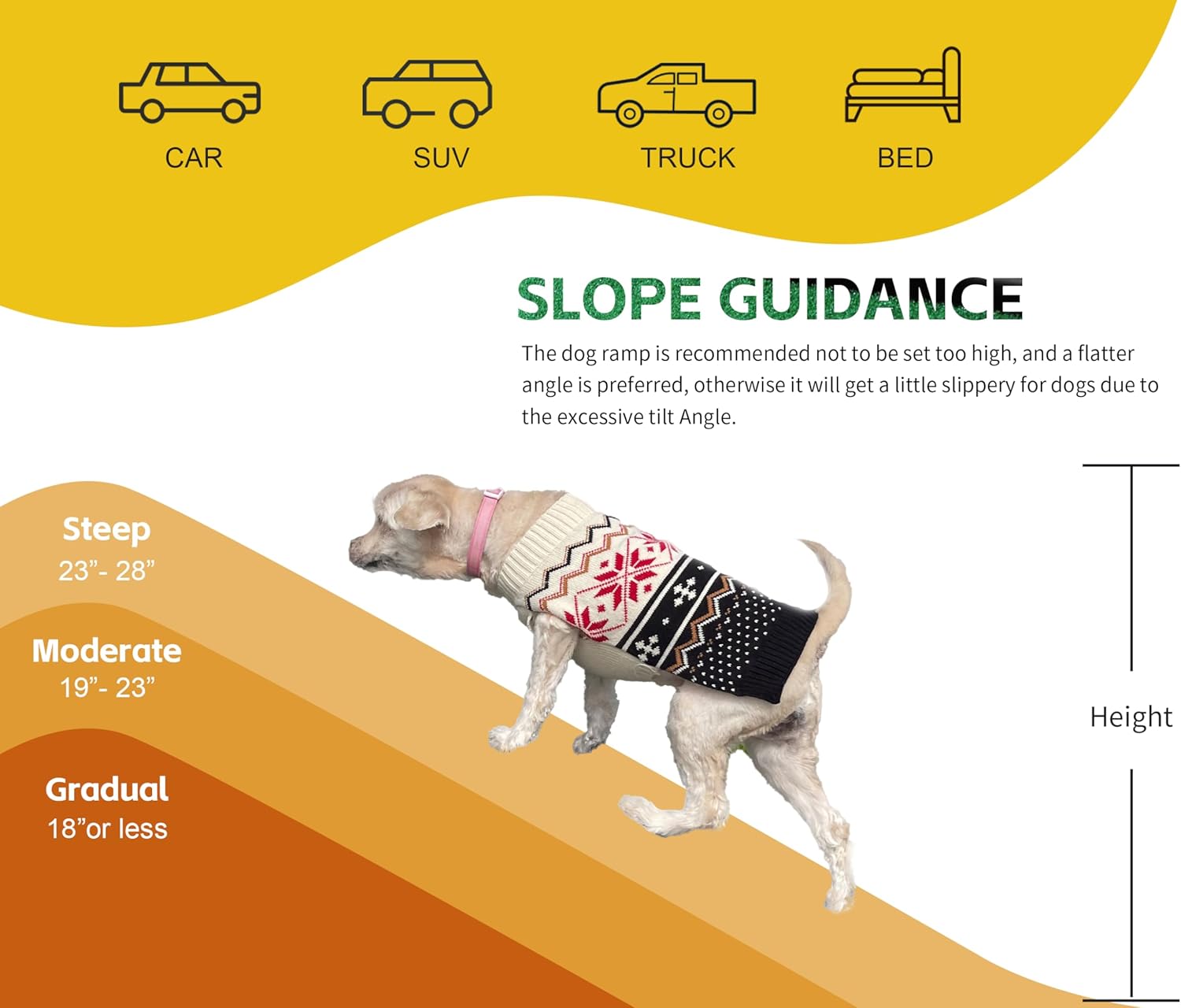- Versatility for All Surfaces: From car rides to cozy couches, our ramp effortlessly adapts to various surfaces like SUVs, cars, trucks, trunks, seats, and beds, ensuring a consistent and reassuring climbing experience for your pets.