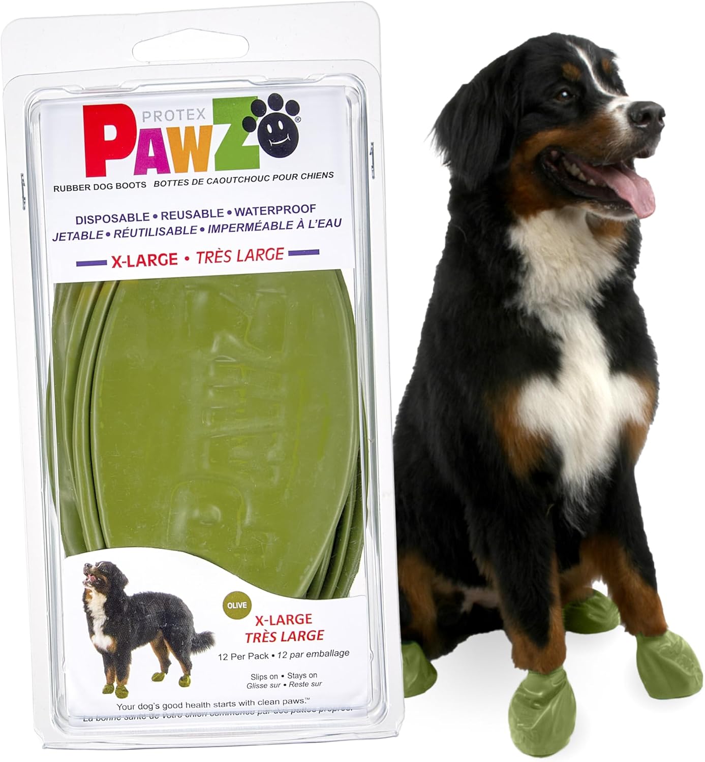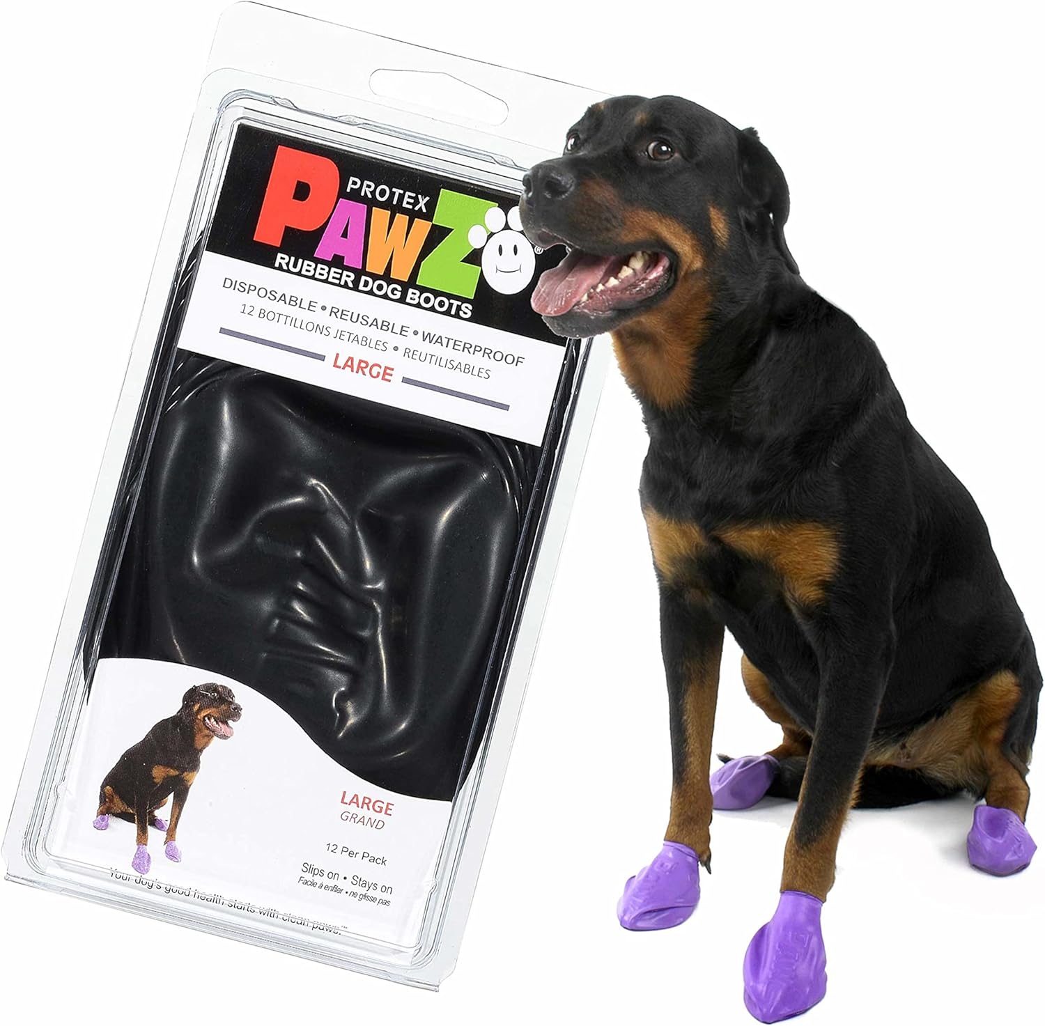 PawZ Rubber Dog Boots for Paws up to 4", 12 Pack - All-Weather Dog Booties for Hot Pavement, Snow, Mud, and Rain - Waterproof, Anti Slip Dog Socks - Large, Black