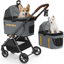 - 4‑in‑1 Versatile Pet Travel System: Seamlessly convert between a pet stroller, detachable travel carrier, seatbelt dog car seat combo, and a familiar travel house. The removable, washable canopy and seat cushion, plus an oversized easy‑open door, let your fur-kids hop on and off with ease—ideal for vet visits, travel, outdoor adventures, or daily walks. Perfect for small/medium dogs and cats (or even 2 small dogs/2 cats) .