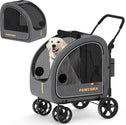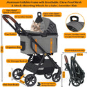 - Quick Assembly, One‑Handed Fold & Enhanced Portability: Built with a lightweight (only 10 lb) aluminum frame, the one‑hand quick‑fold design ensures effortless storage and transportation. The independent standing design (with a PU leather-free handle) and one-foot brake offer added convenience, while an integrated cup holder and extra‑large storage basket keep pet supplies and toys within reach.
