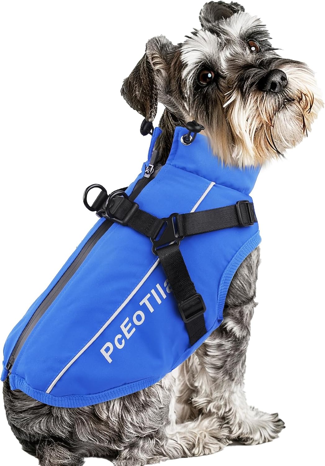 PcEoTllar Dog Coat with Harness, Warm Dog Winter Jacket, Waterproof Windproof Dog Cold Weather Coat, Reflective Snow Dog Clothes with Zipper, Thick Dog Coat for Small Medium Large Dogs (Blue,l)