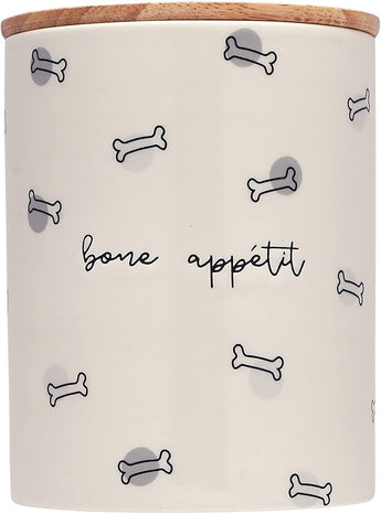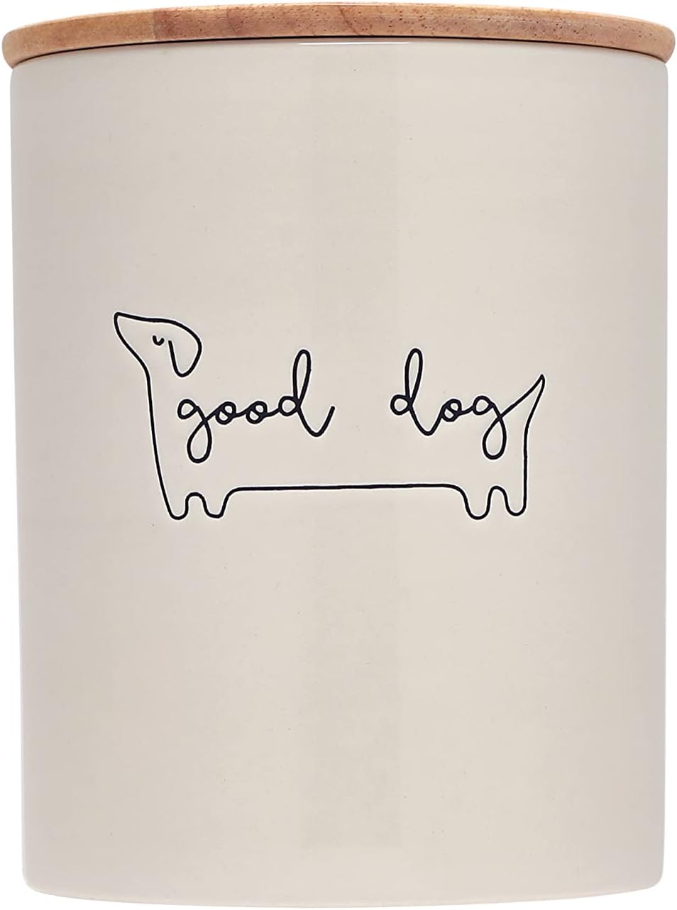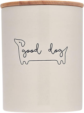 - Dishwasher Safe: This beige ceramic treat canister with a neutral wooden lid features a silicone seal to keep your dog food fresh. This treat jar is microwave safe and dishwasher safe making it easy to clean