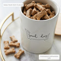 - Ceramic Dog Treat Jar: Store your furry friends favorite treats in style with this adorable, good dog treat jar by Pearhead. Big and tall enough for small dog treats or large dog treats, this dog treat container is the perfect choice for dogs of all sizes