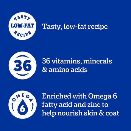 Dogs bring out the good in us. Pedigree brings out the good in them. Express your love for your dog by serving Pedigree Healthy Weight Adult Dry Dog Food, Roasted Chicken and Vegetable Flavor recipe. This healthy weight dry dog food recipe is great-tasting, low fat, and contains whole grains, protein, and accents of vegetables, bringing your dog a meal they can enjoy without the guilt. To support your dog’s health and vitality, this dry dog food recipe is formulated with 36 vitamins, minerals, and amino acids. It also contains Omega 6 Fatty Acid and Zinc to help nourish a healthy skin and coat. With no high fructose corn syrup, artificial flavors, or added sugars, Pedigree Healthy Weight Adult Dry Dog Food, Roasted Chicken and Vegetable Flavor shows your dog that you care…and have great taste.